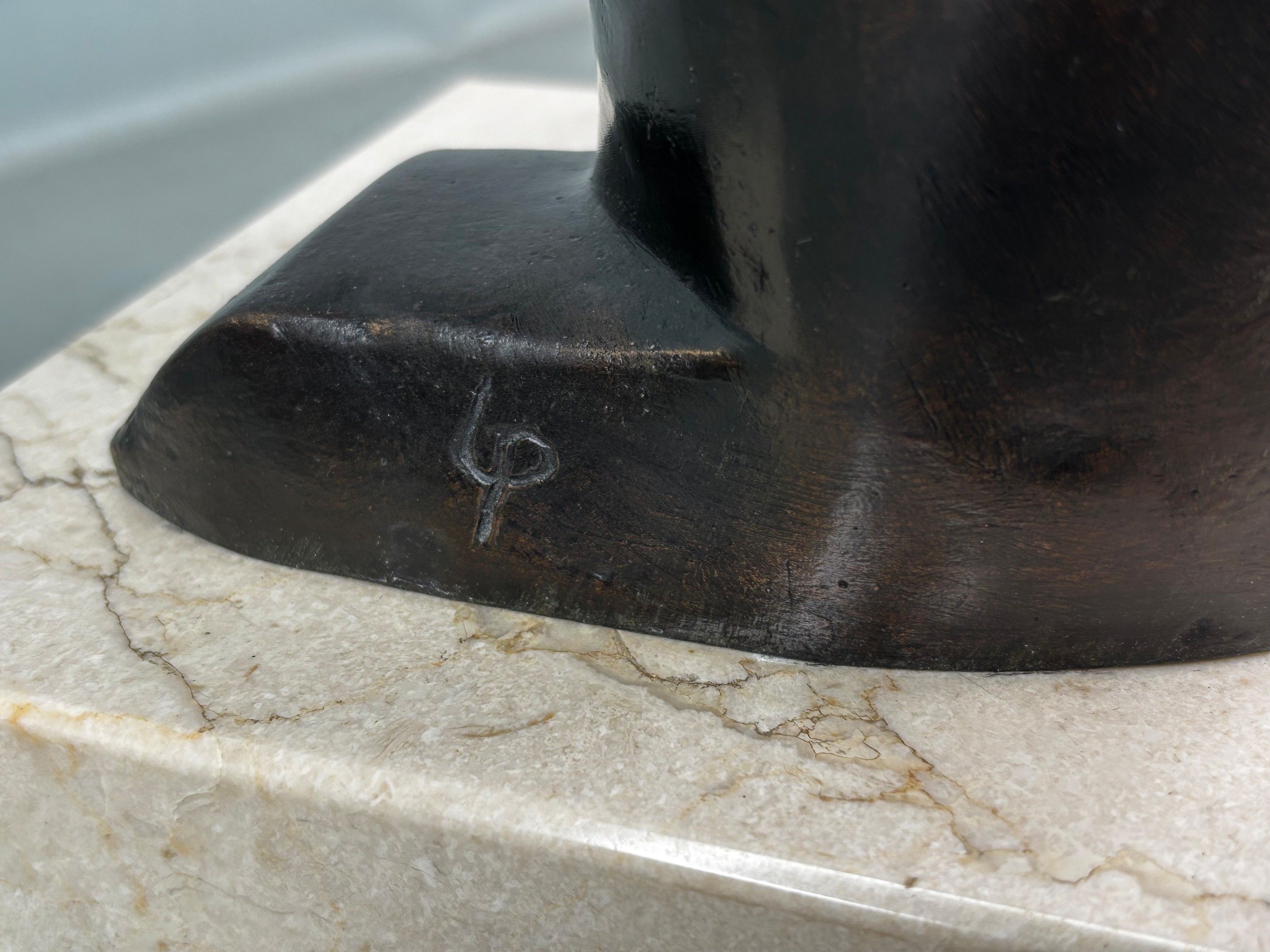 Bronze with patina; monogrammed, founder's stamp