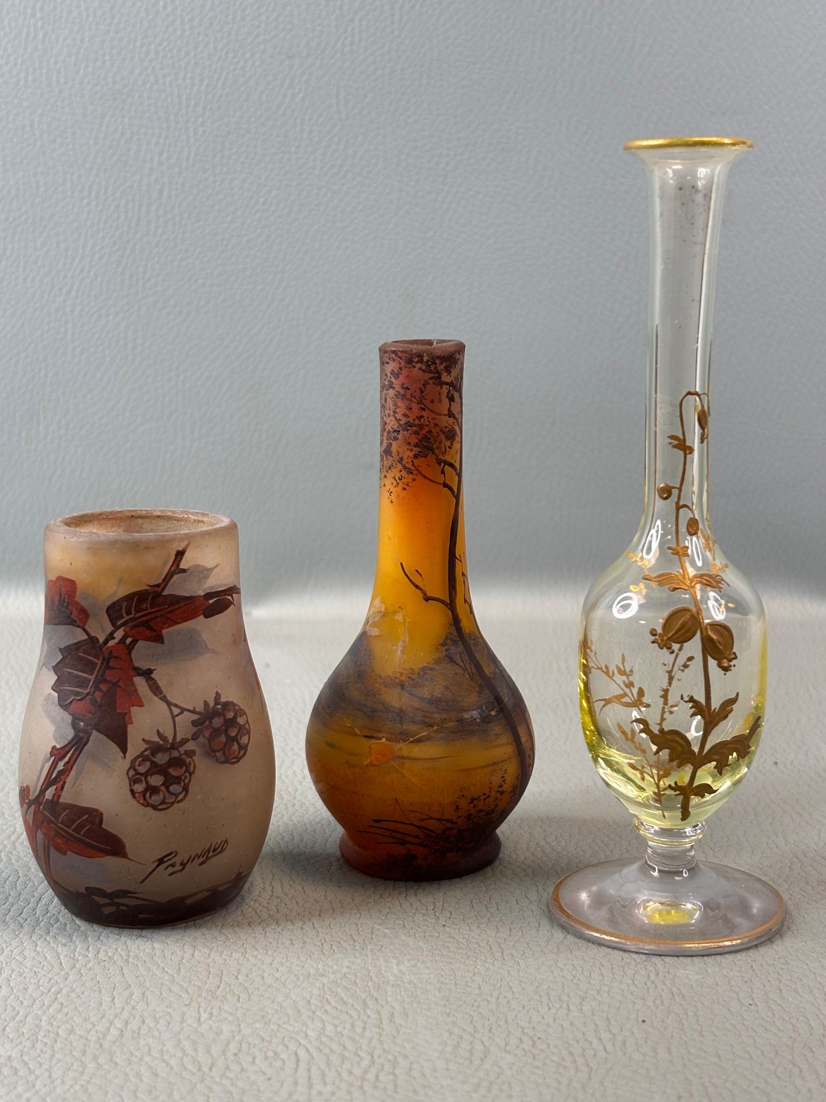 LOT of three miniature vases in painted and enamelled gilt glass (acc to one)