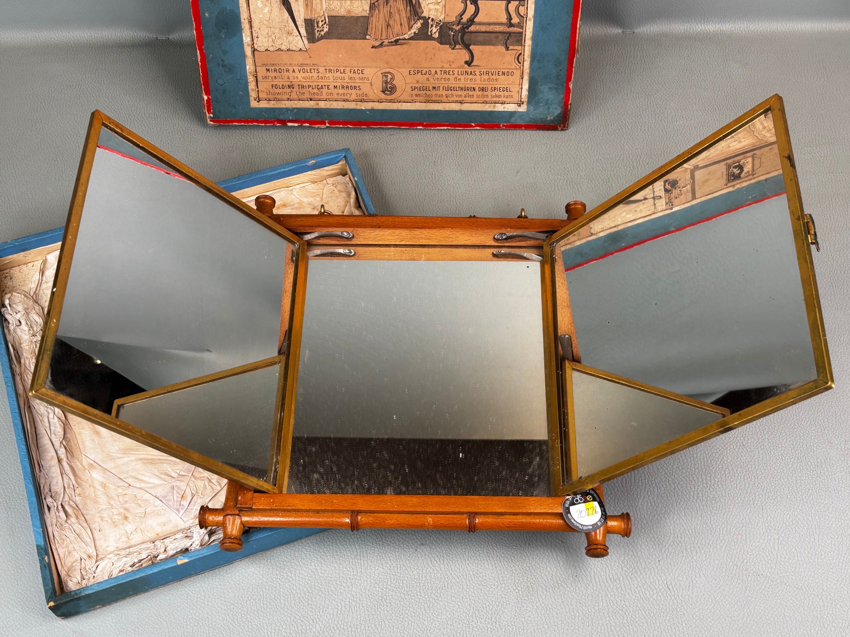 LB triptych hanging mirror in bamboo wood and lacquered meta…