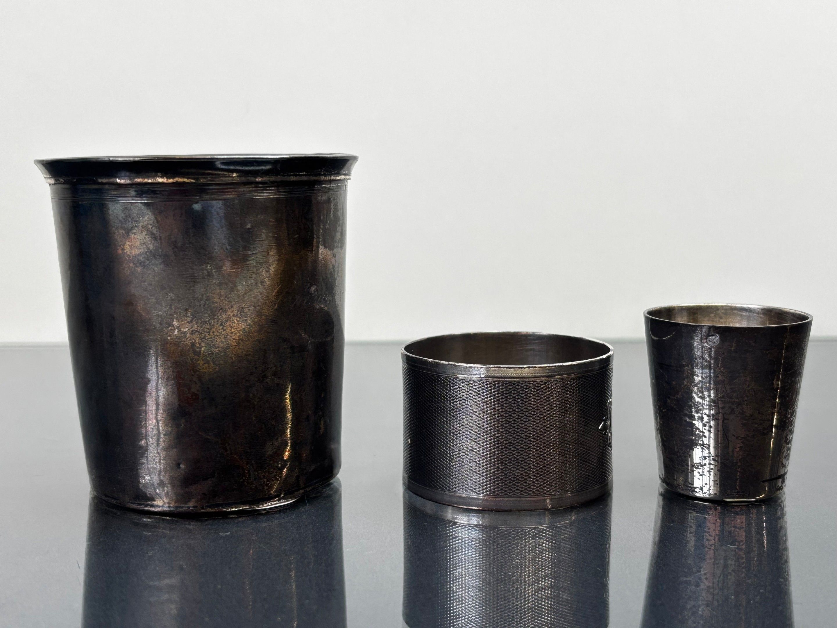 LOT: silver flat-bottomed tumbler, goblet and napkin ring
