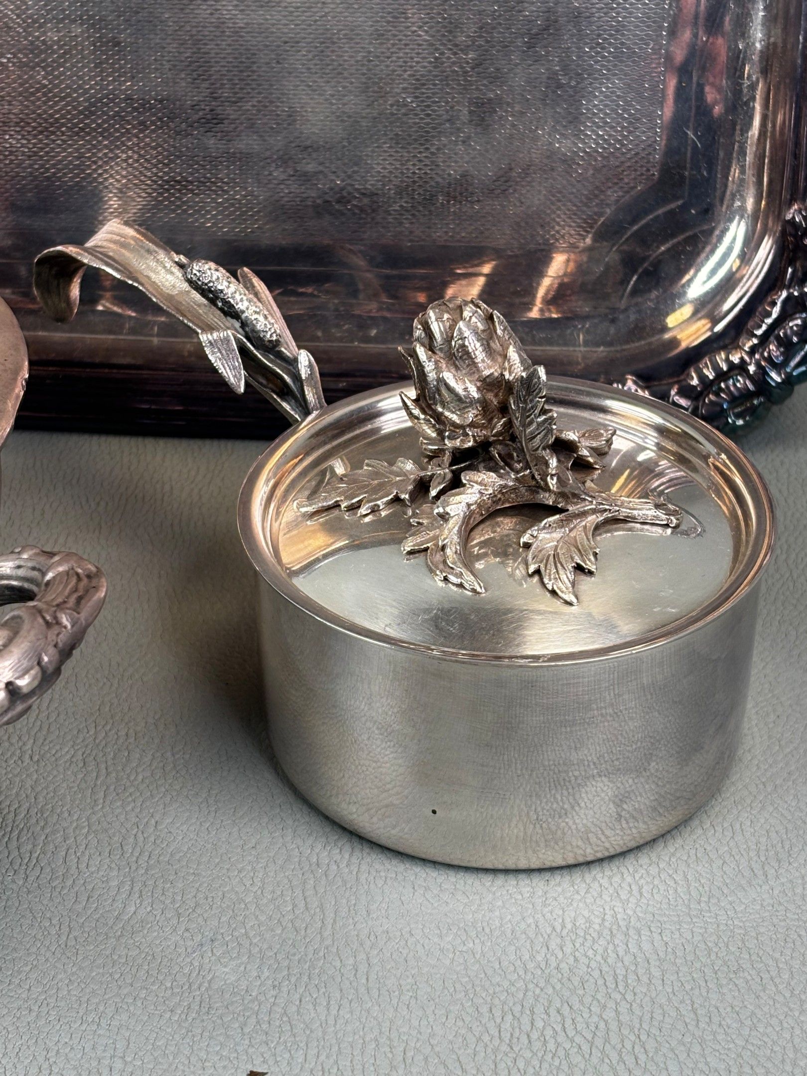 LOT: silver-plated metal saucepan and lid, covered vegetable…