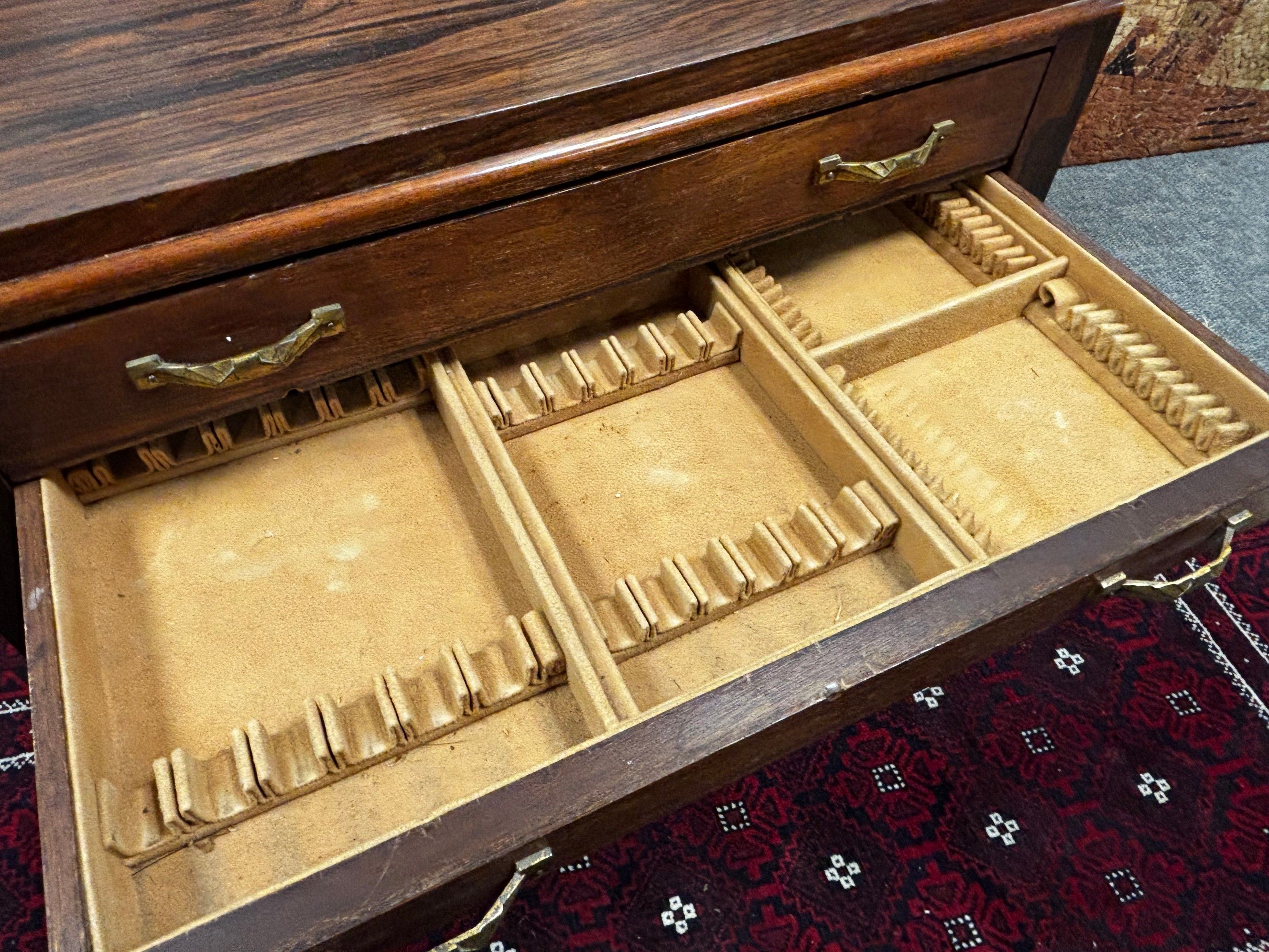 A rosewood-veneered menagere cabinet opening to 4 drawers; b…