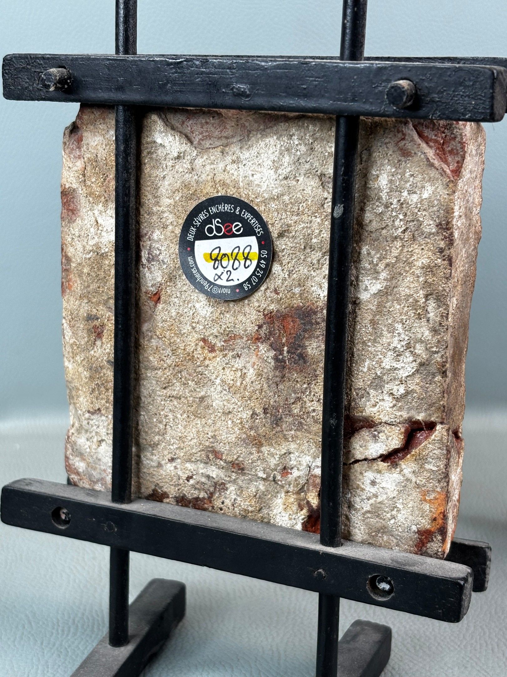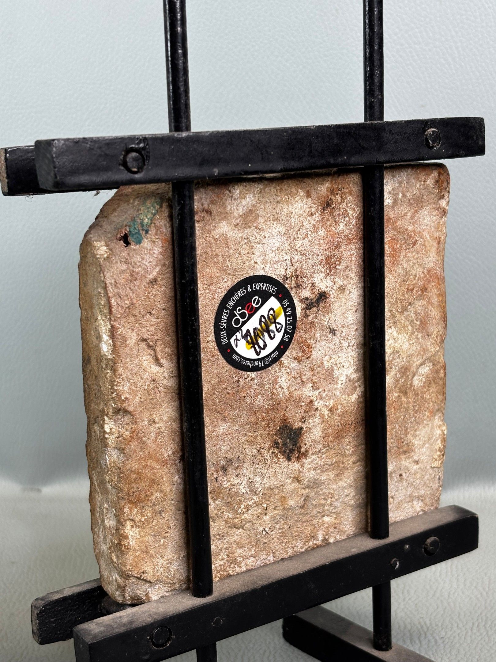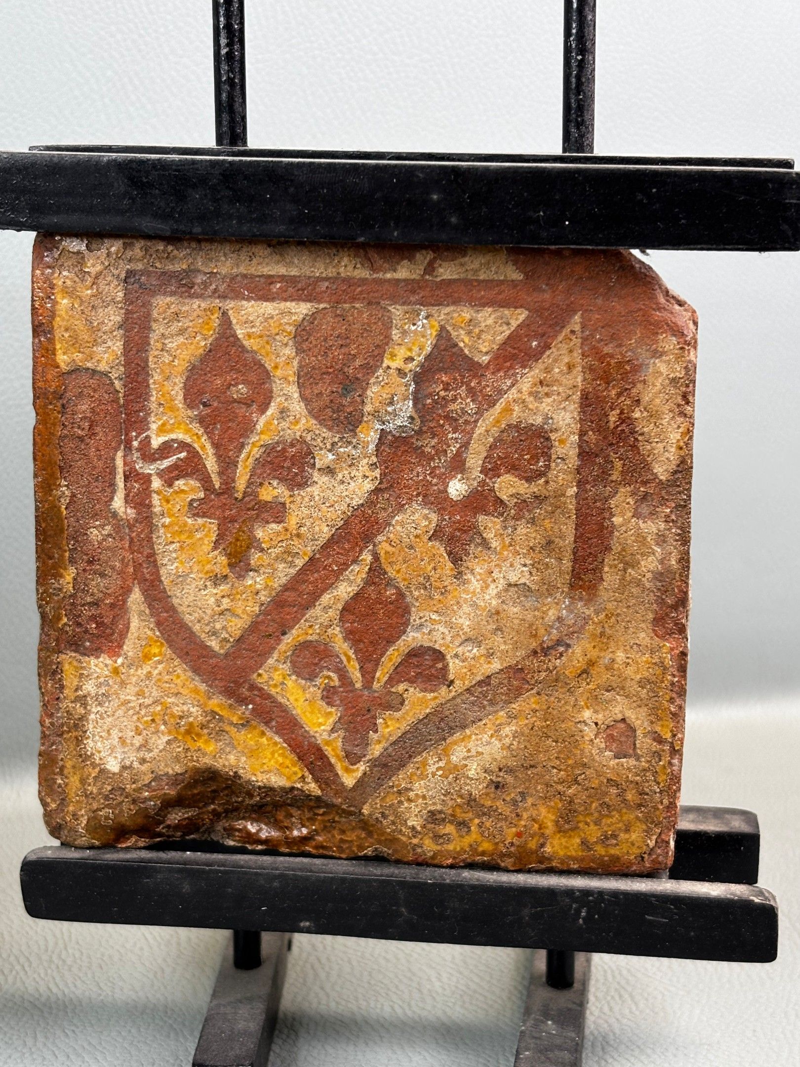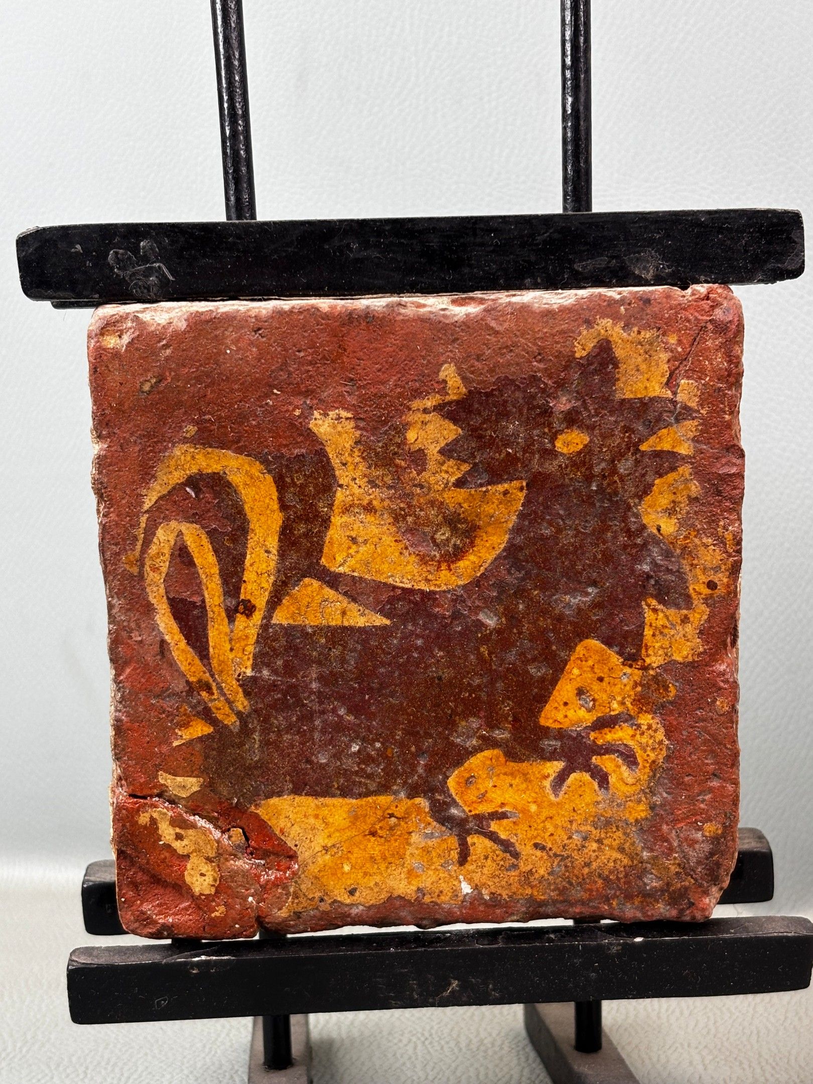 TWO TILES in glazed terracotta, one decorated with a fleurdelisé coat of arms, the other with a rooster.
