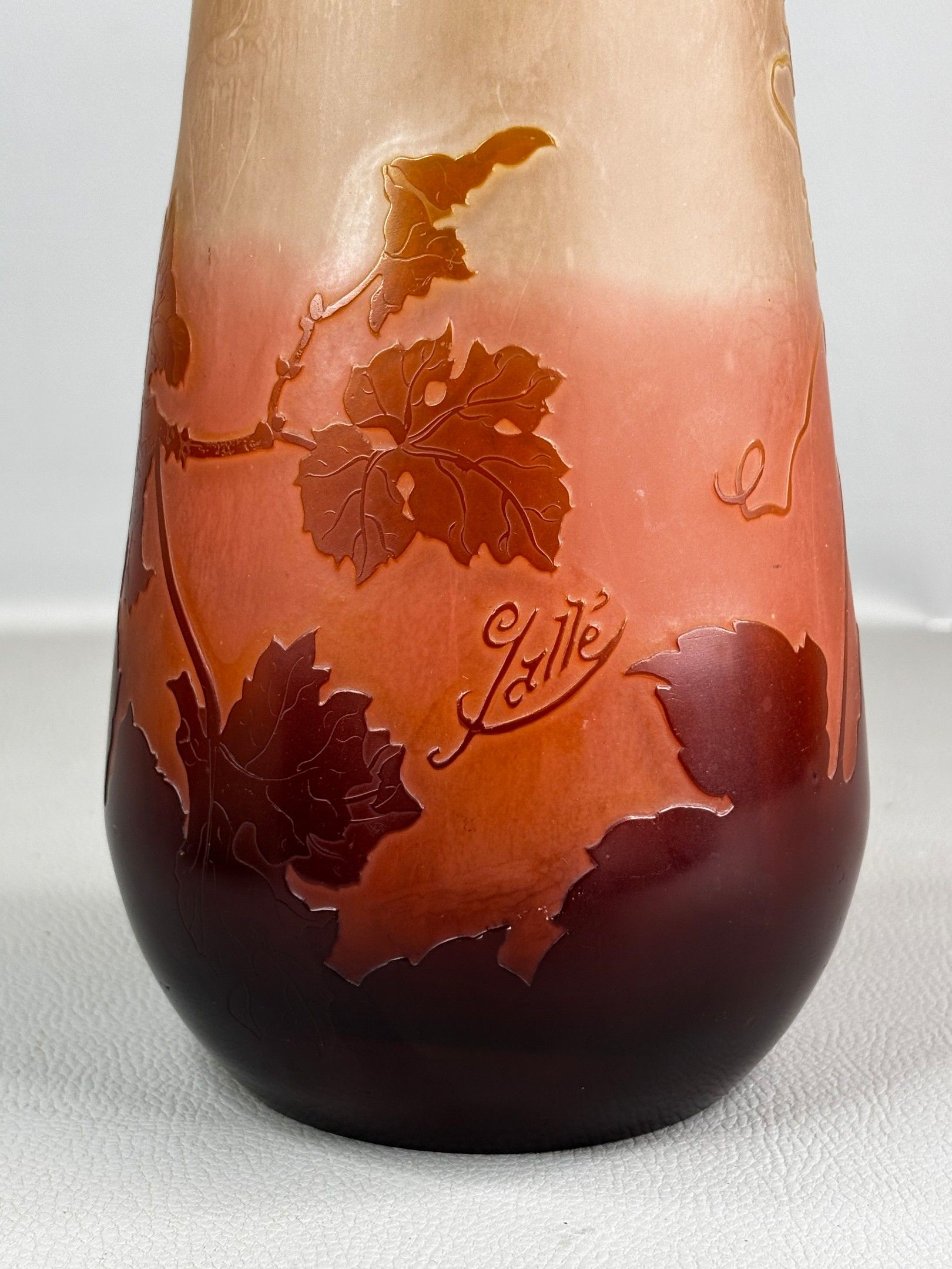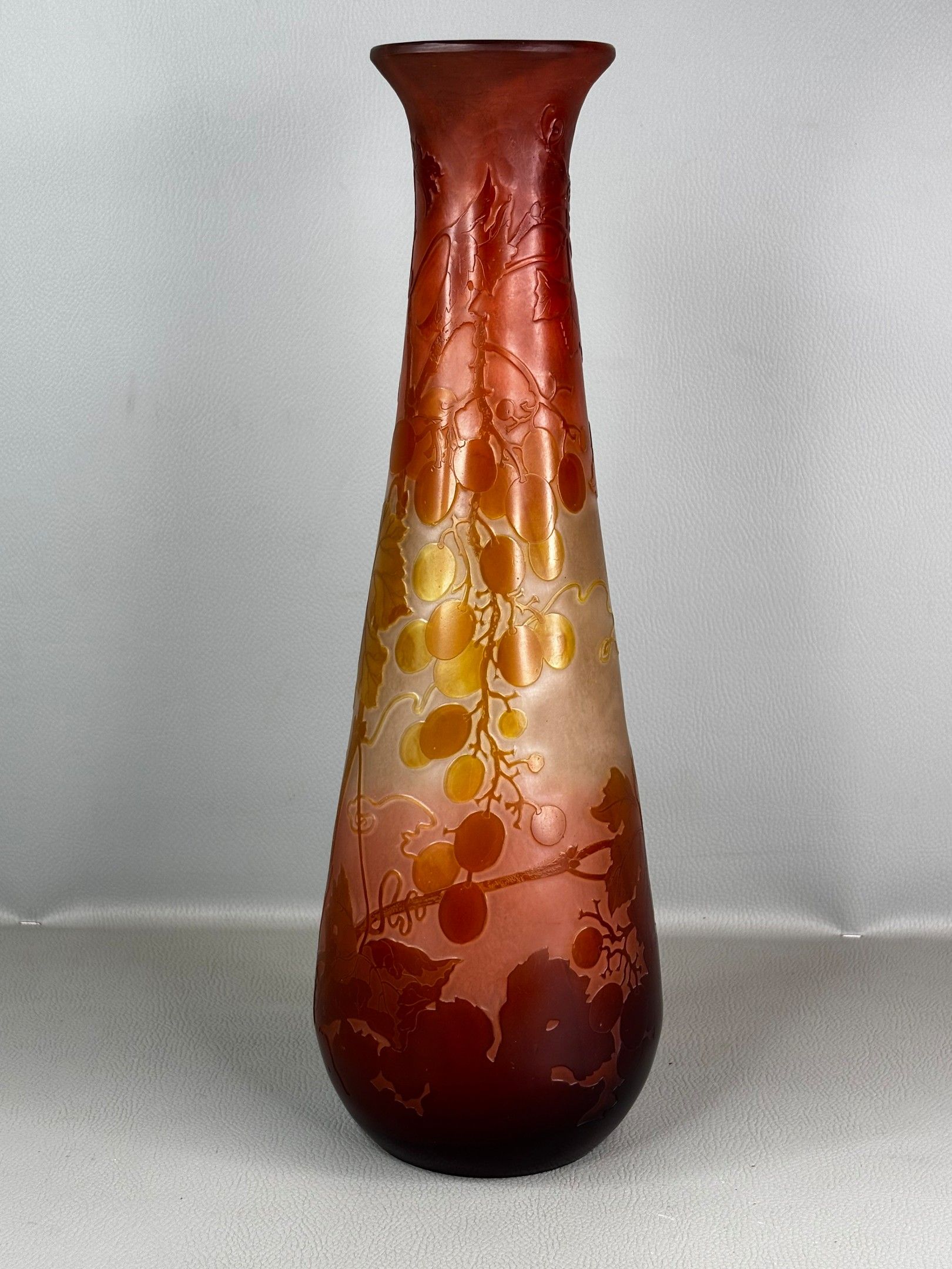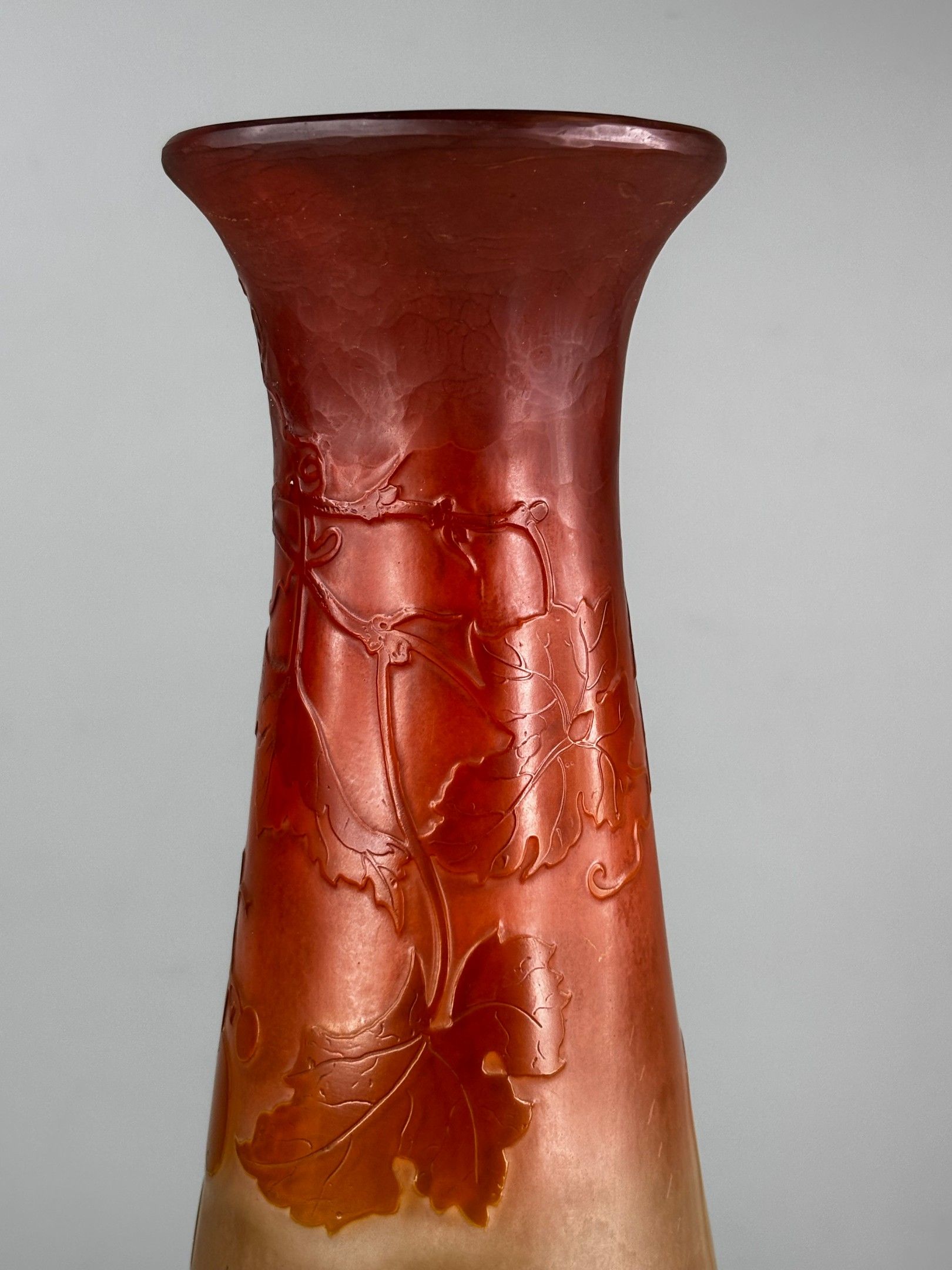 GALLE Large glass vase with acid-etched decoration of vine l…