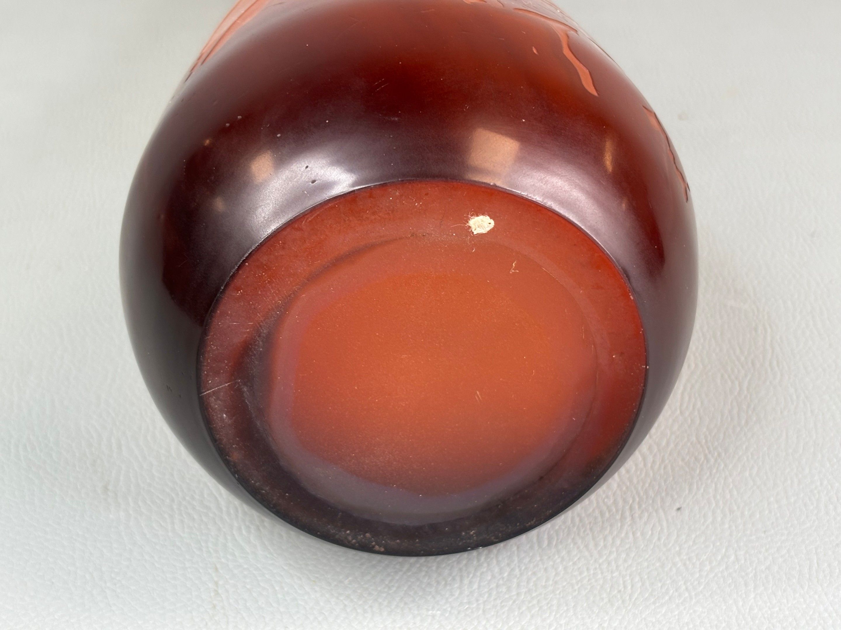 Premium GALLE Large glass vase with acid-etched decoration of vine l…
