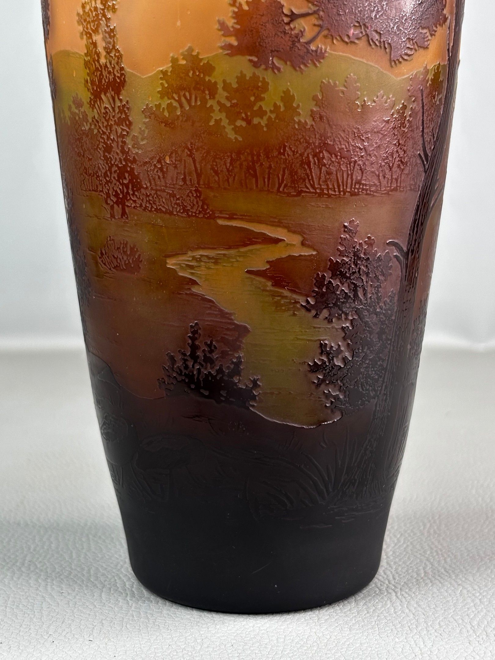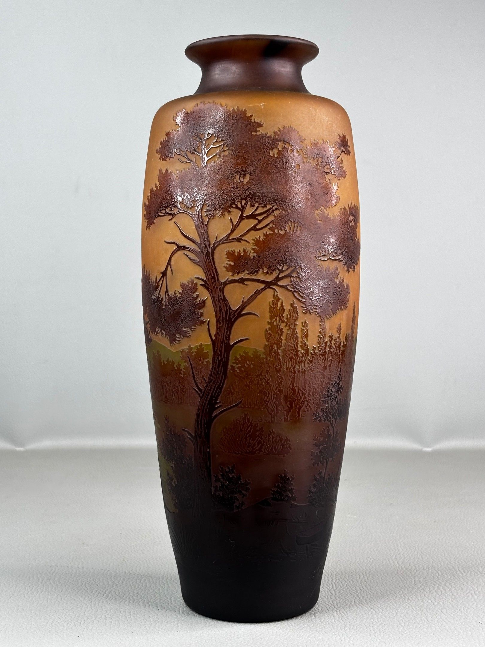 Premium D'ARGENTAL Glass vase with acid-etched decoration of a lands…