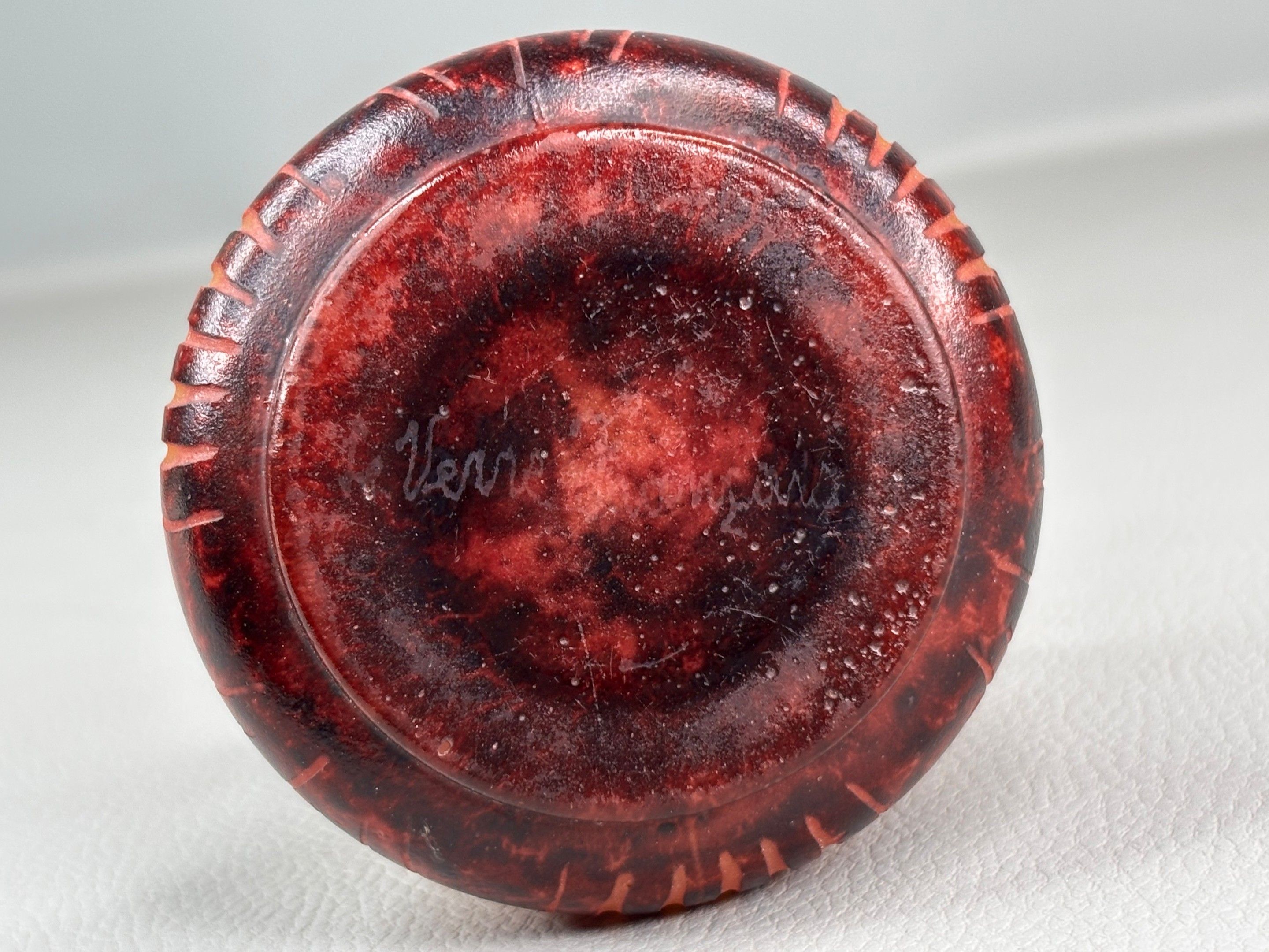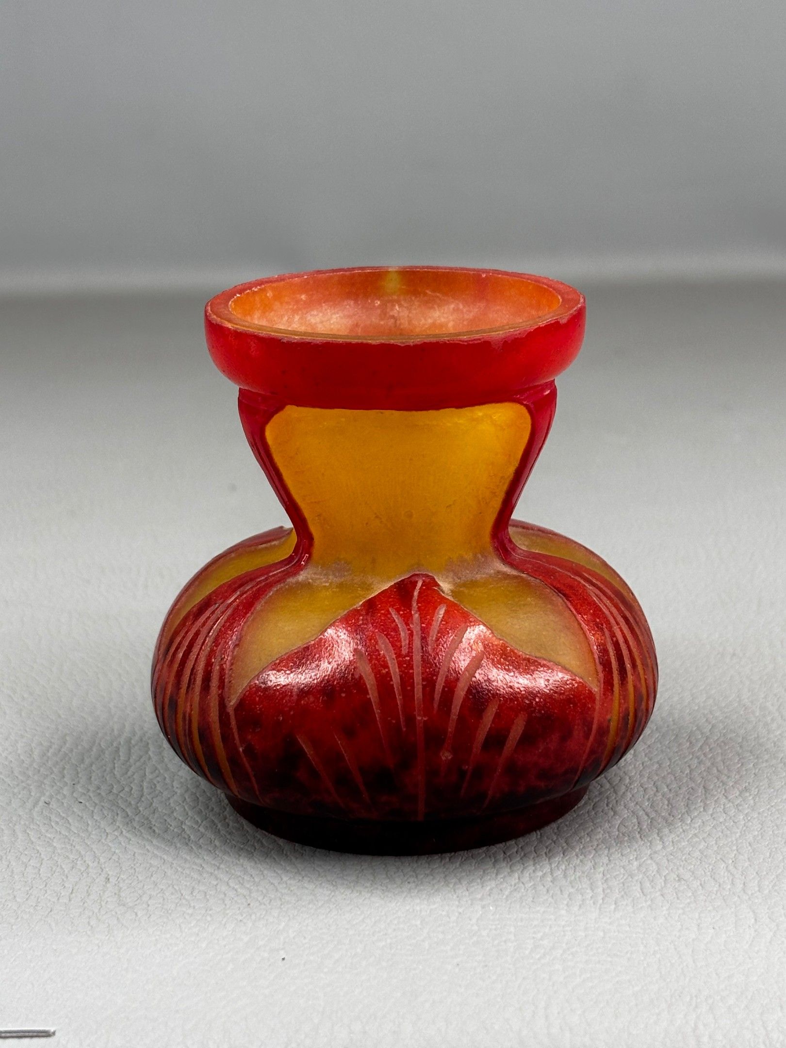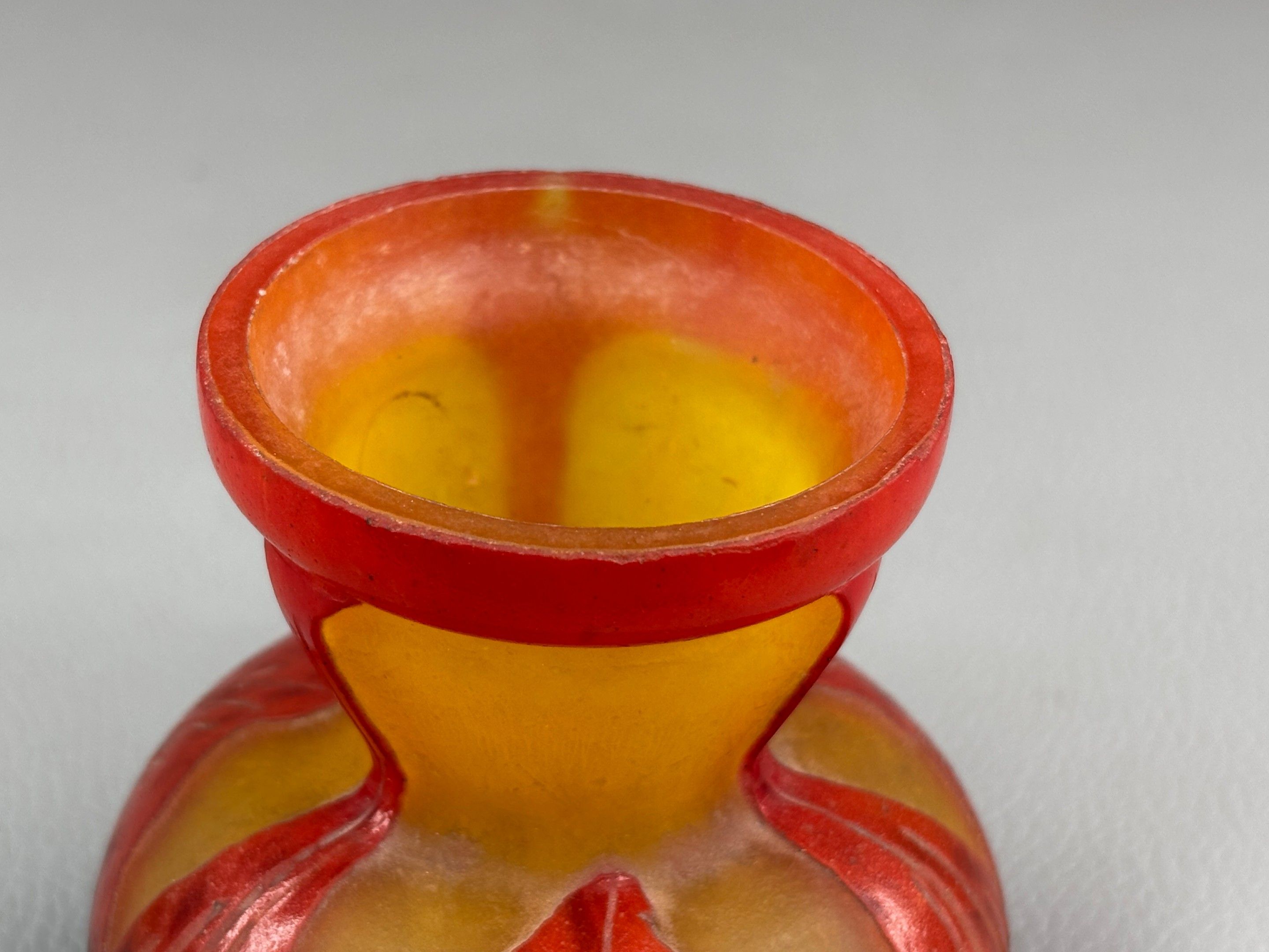 FRENCH GLASS A small acid-etched glass vase with a flared ne…