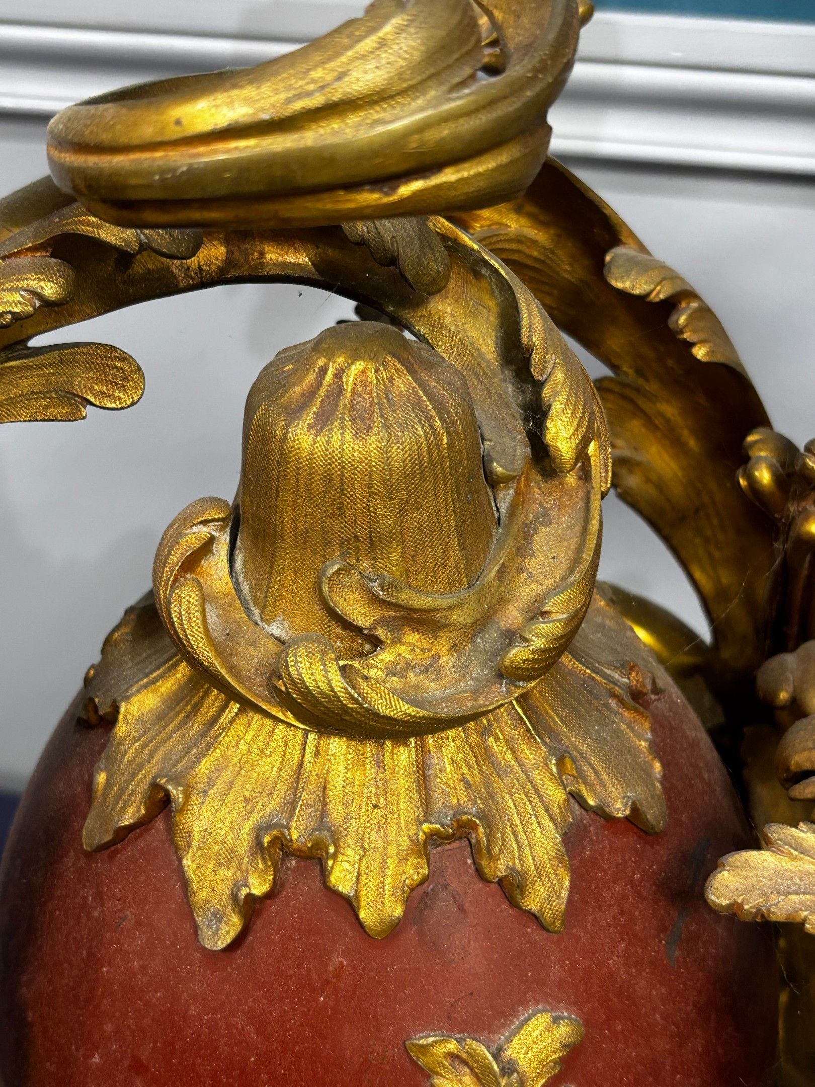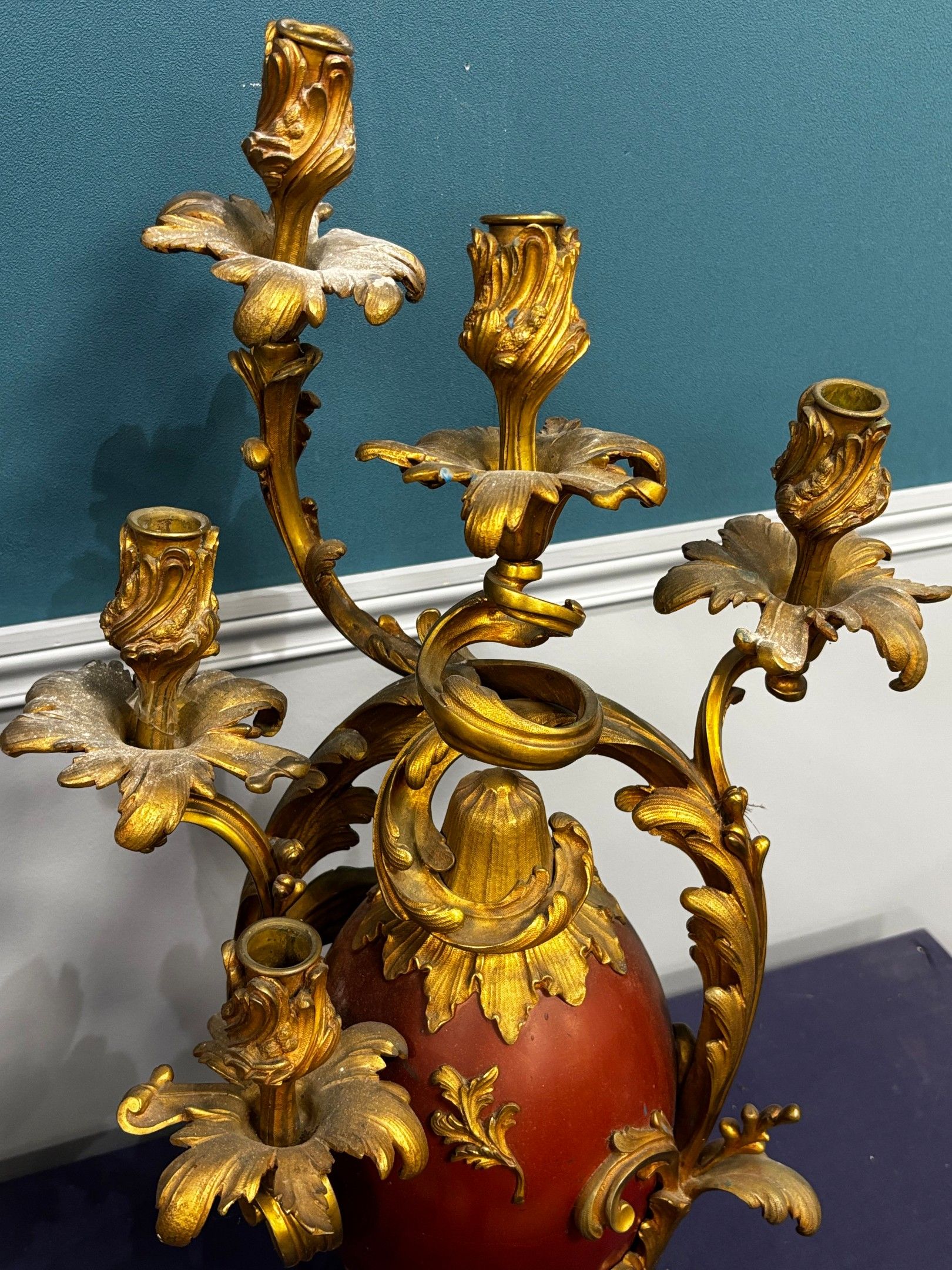 Pair of bronze and red lacquered sheet metal candelabra with 5 lights (missing and one to be refixed)