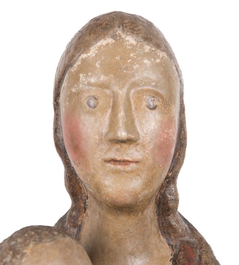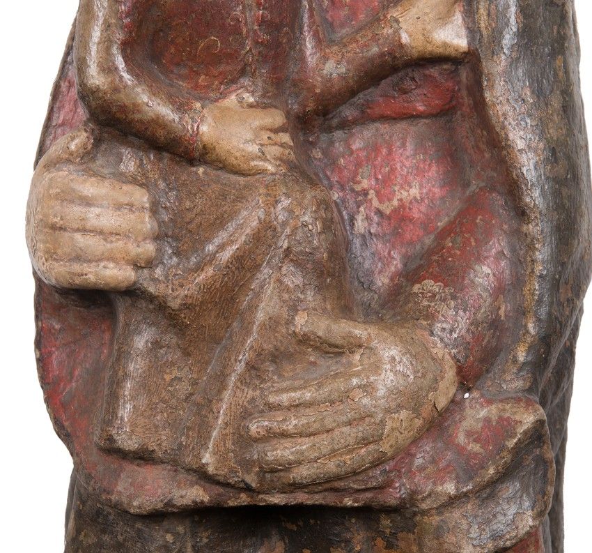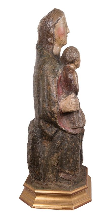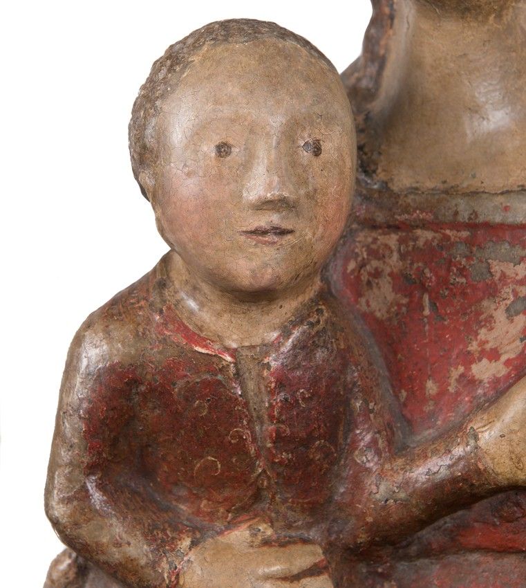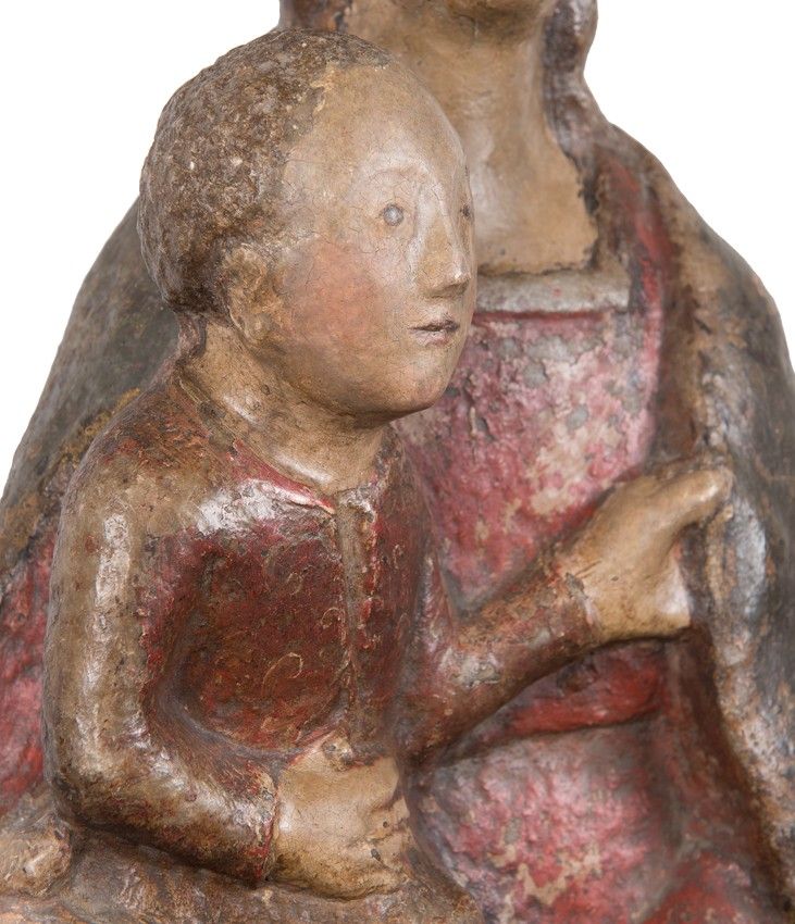 Our beautiful and special image perfectly shows us the transition from Romanesque to Gothic. The process through which the cult of Mary will cease to represent her with the rigidity of the full Romanesque forms and will turn her into a loving mother, her role as a severe throne of wisdom now forgotten.