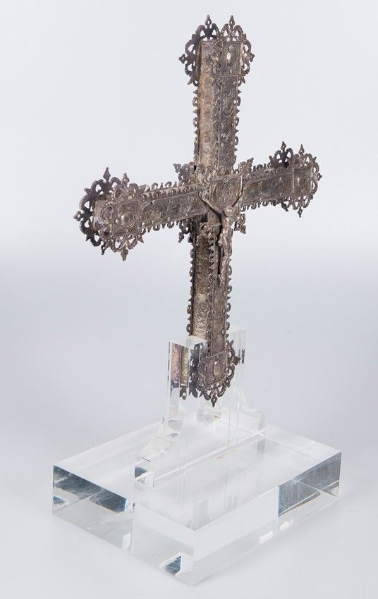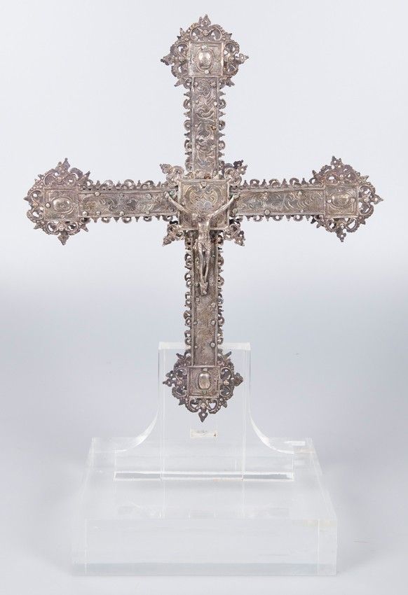 Premium Cast, embossed and chiseled silver altar cross. Catalan work…