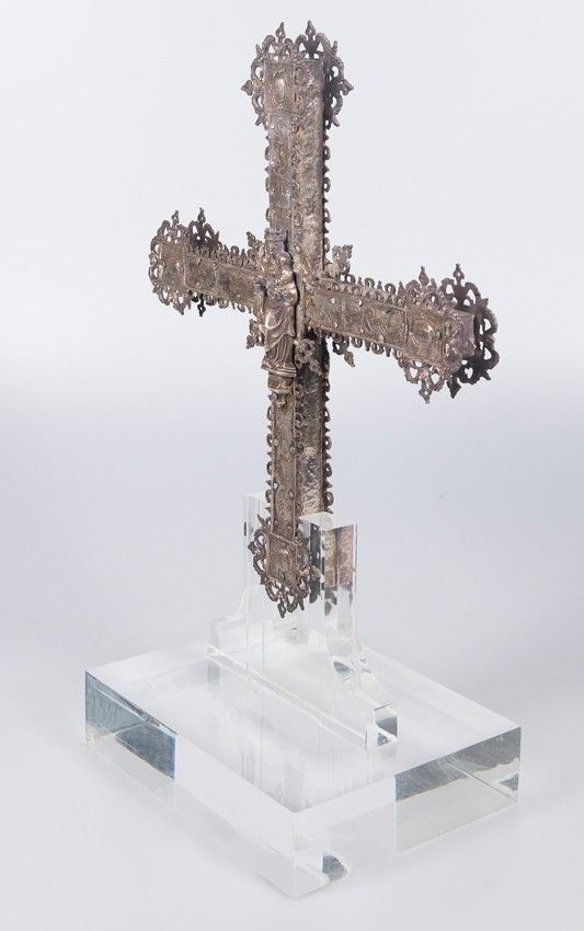 Cast, embossed and chiseled silver altar cross. Catalan workshop. Dated in 1631.