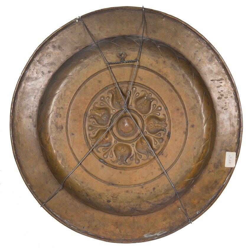 Large alms dish in gilded and embossed brass. Nuremberg. Ger…