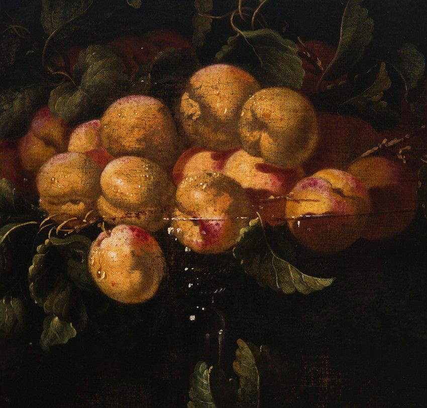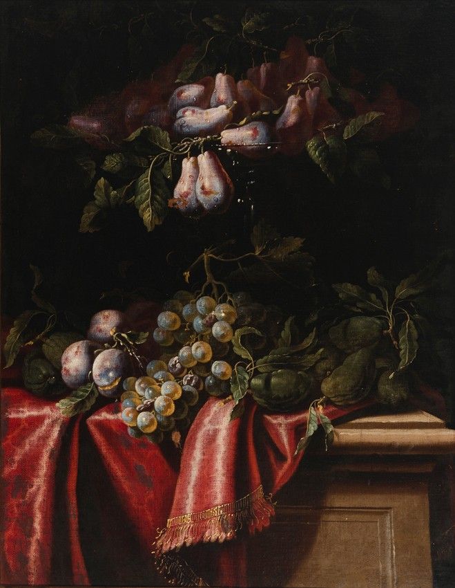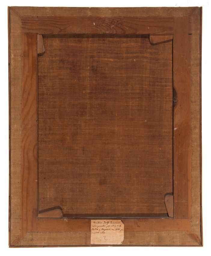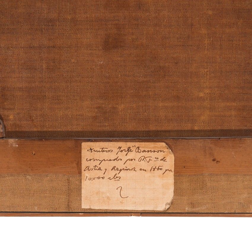 One of them, label on the back, which reads: 'Fruteros Jorge ¿'Banson'? comprados por D.Fco de Ortiz y Azpiroz en 1850 por 10.000 reales' ('Fruteros Jorge ¿'Banson'? bought by D.Fco de Ortiz y Azpiroz in 1850 for 10,000 reals')