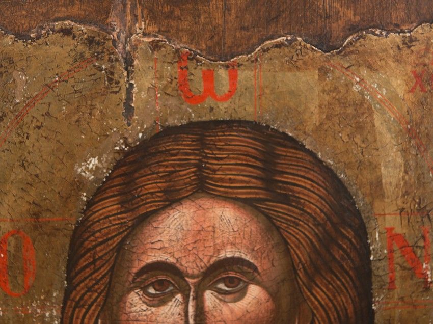 Greek icon. 18th century. 'Face of Christ' Tempera and gold on panel. 37 x 28 cm. Provenance: Private collection. Spain.