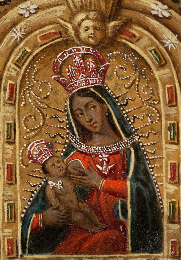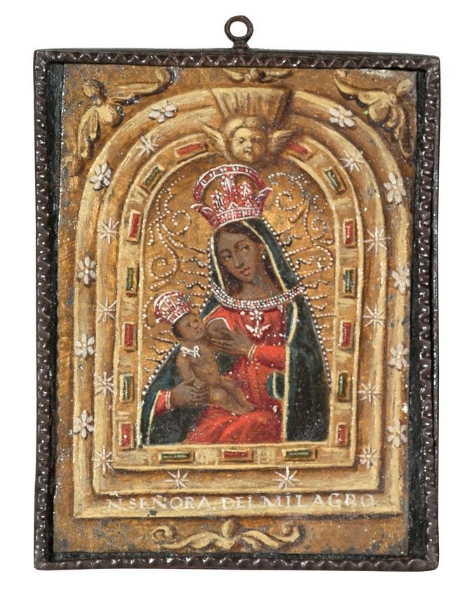 Miniature. Oil on copper. Handwritten inscription in the lower margin: 'N. SEÑORA DEL MILAGRO' ('OUR LADY OF THE MIRACLE').