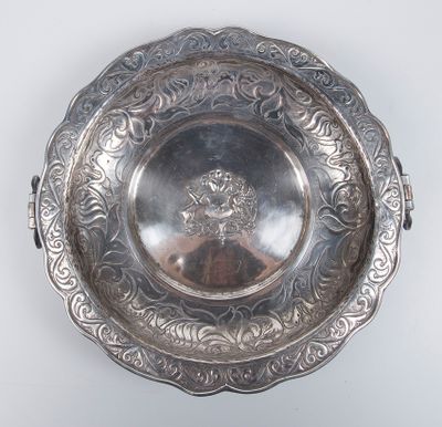 Silver tray with coat of arms in the center. Chile. Circa 18…
