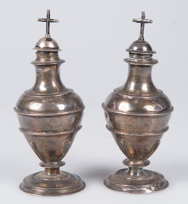 Pair of silver chrismatories. 16th - 17th centuries.
