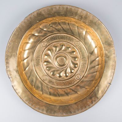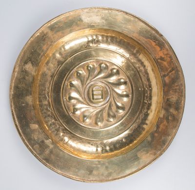 Large alms dish in gilded and embossed brass. Nuremberg. Ger…