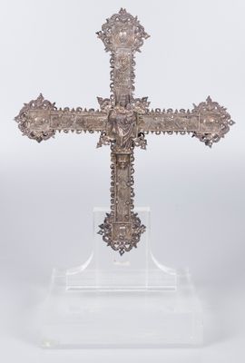 Cast, embossed and chiseled silver altar cross. Catalan work…