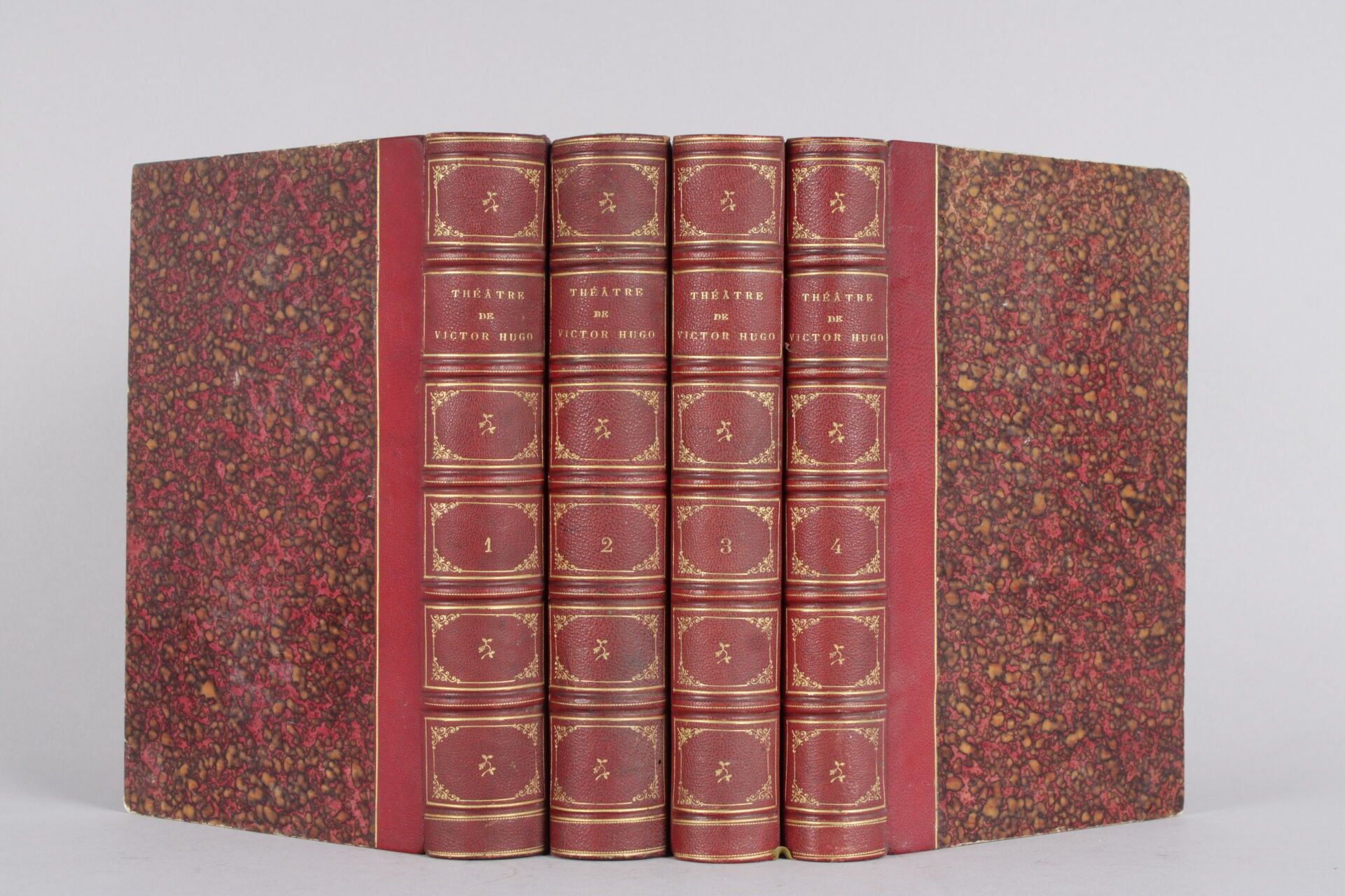HUGO: Complete works. Paris, veuve Alexandre Houssiaux, 1864, 4 vol. in-8°, half-rel, spine ribbed.