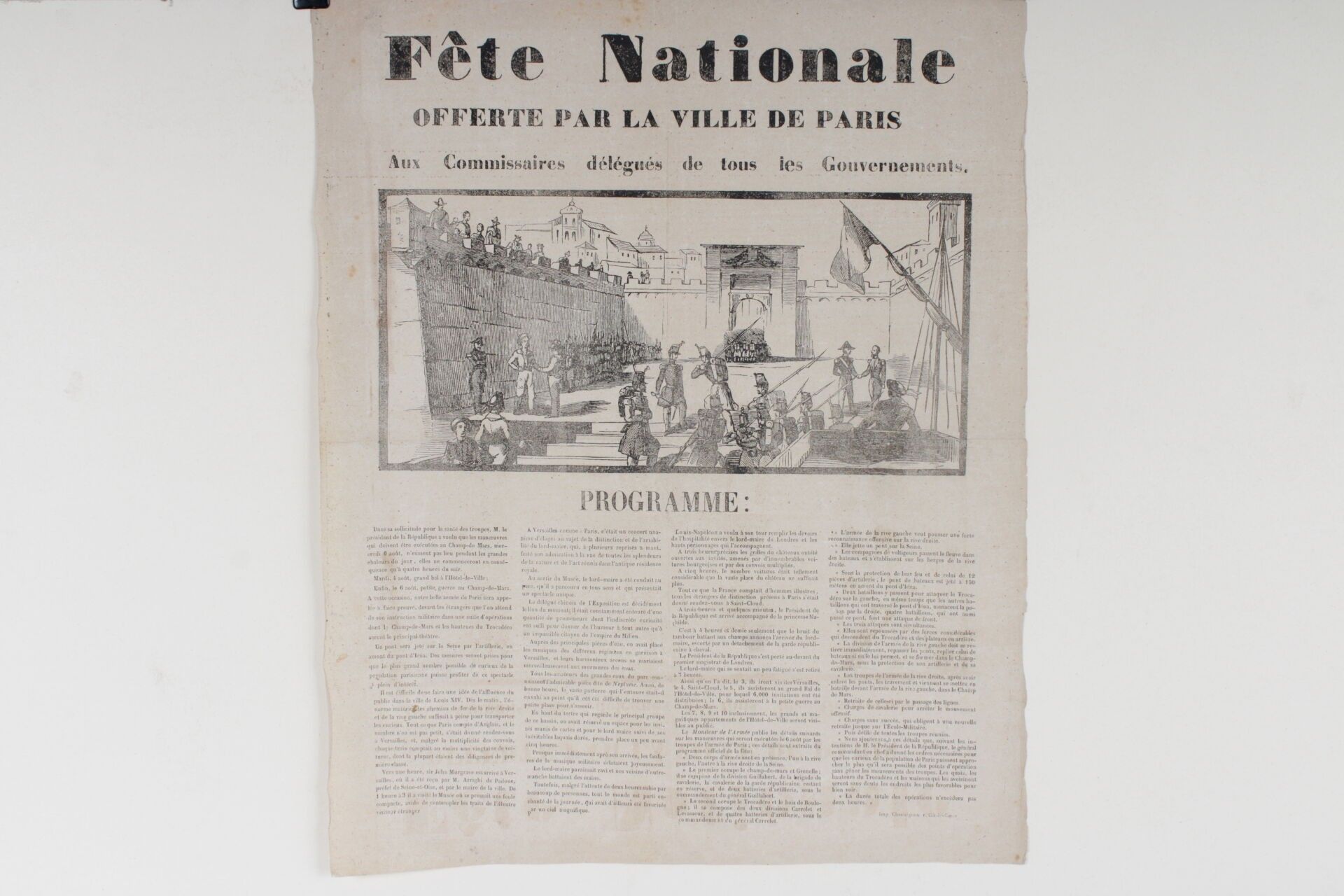 19th c. poster: Fête Nationale offered by the City of Paris …