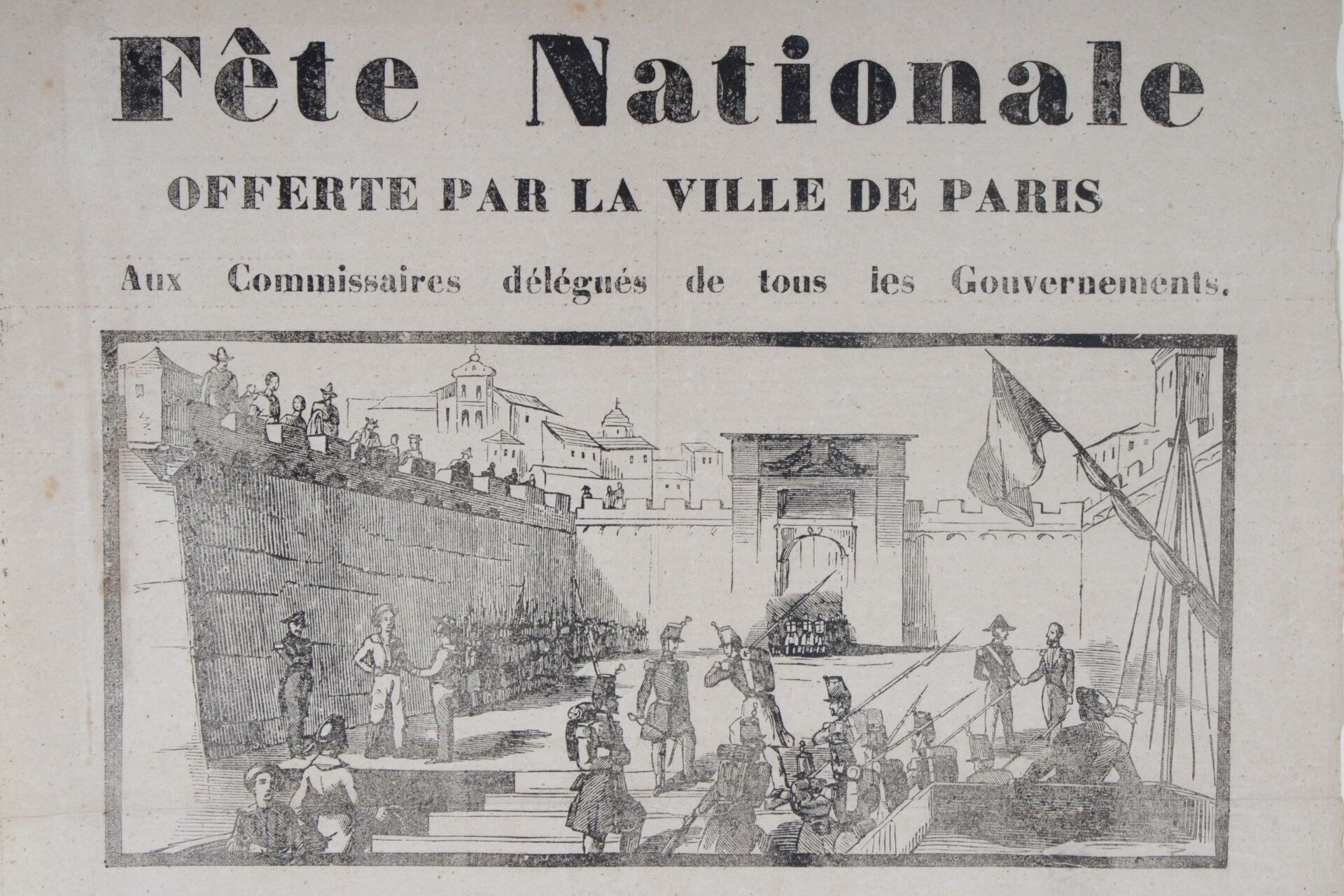 19th c. poster: Fête Nationale offered by the City of Paris to the delegate commissioners of all the governments.