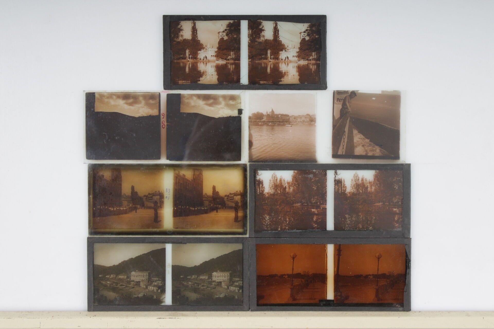 set of positive relief photographs on glass plates, 13 x 6 c…
