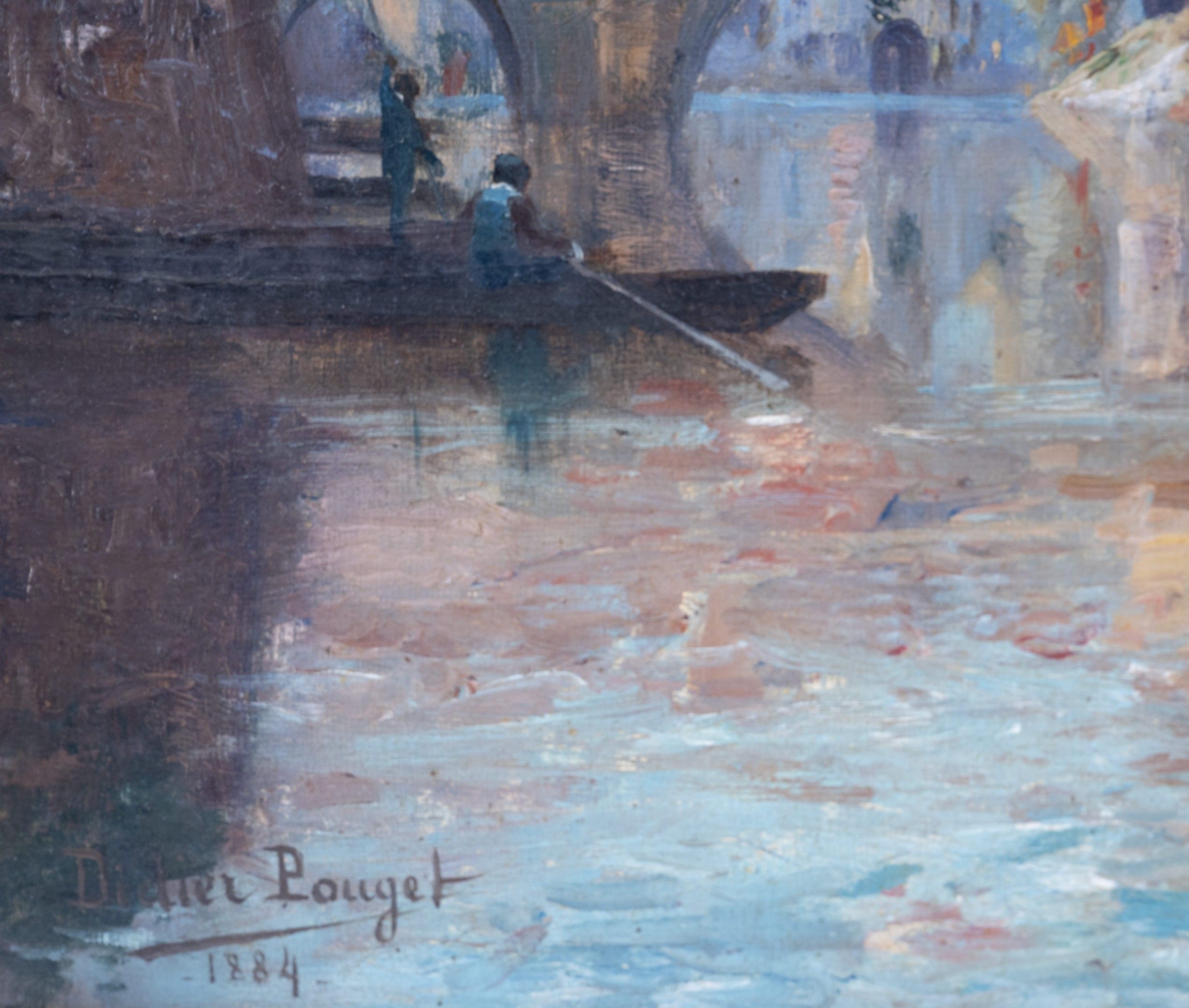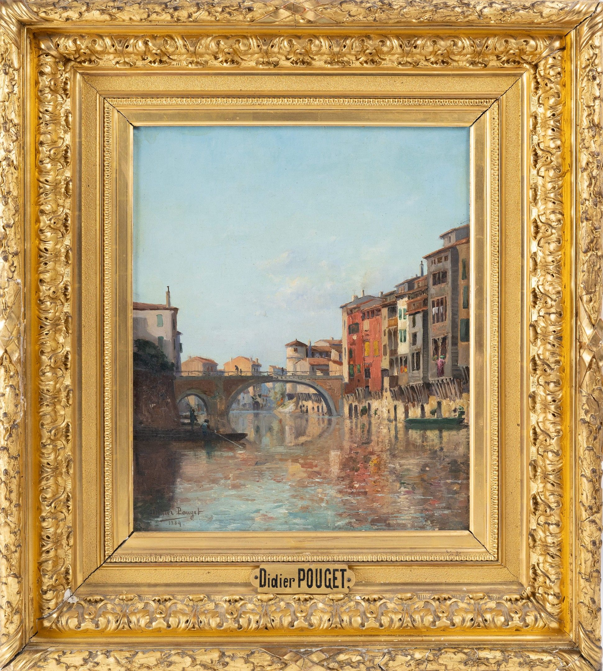William DIDIER-POUGET (1864-1959), "Vieilles mlaisosn sur l'Agout, Castres", Oil on canvas signed lower left, inscription on the stretcher on the back, H: 46 cm, W: 38 cm, in a fine gilt wood and sctuc frame (slight accidents)