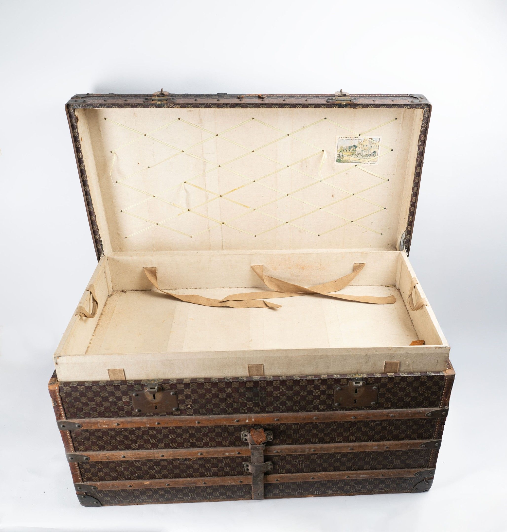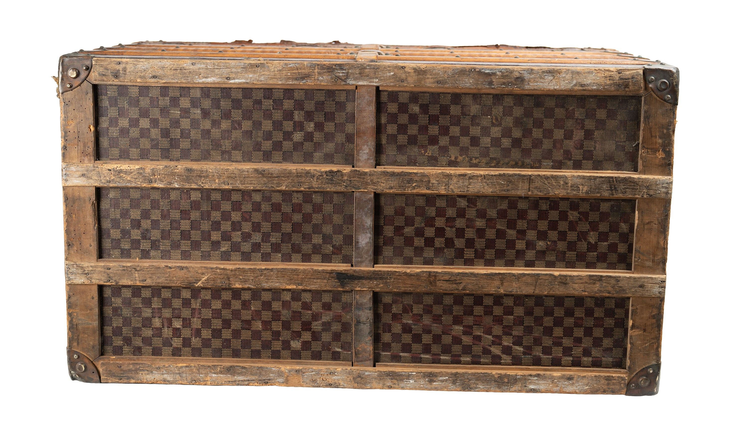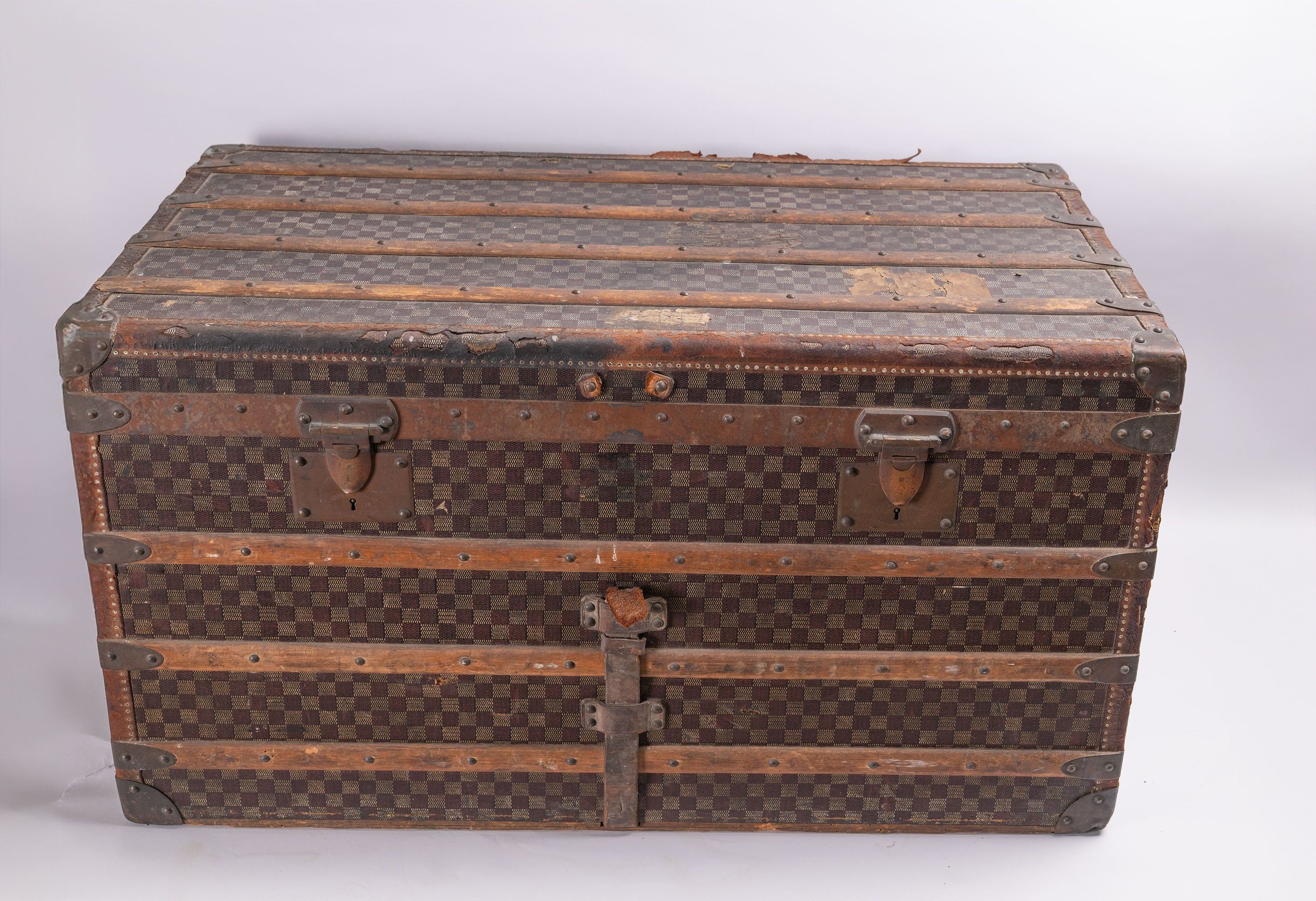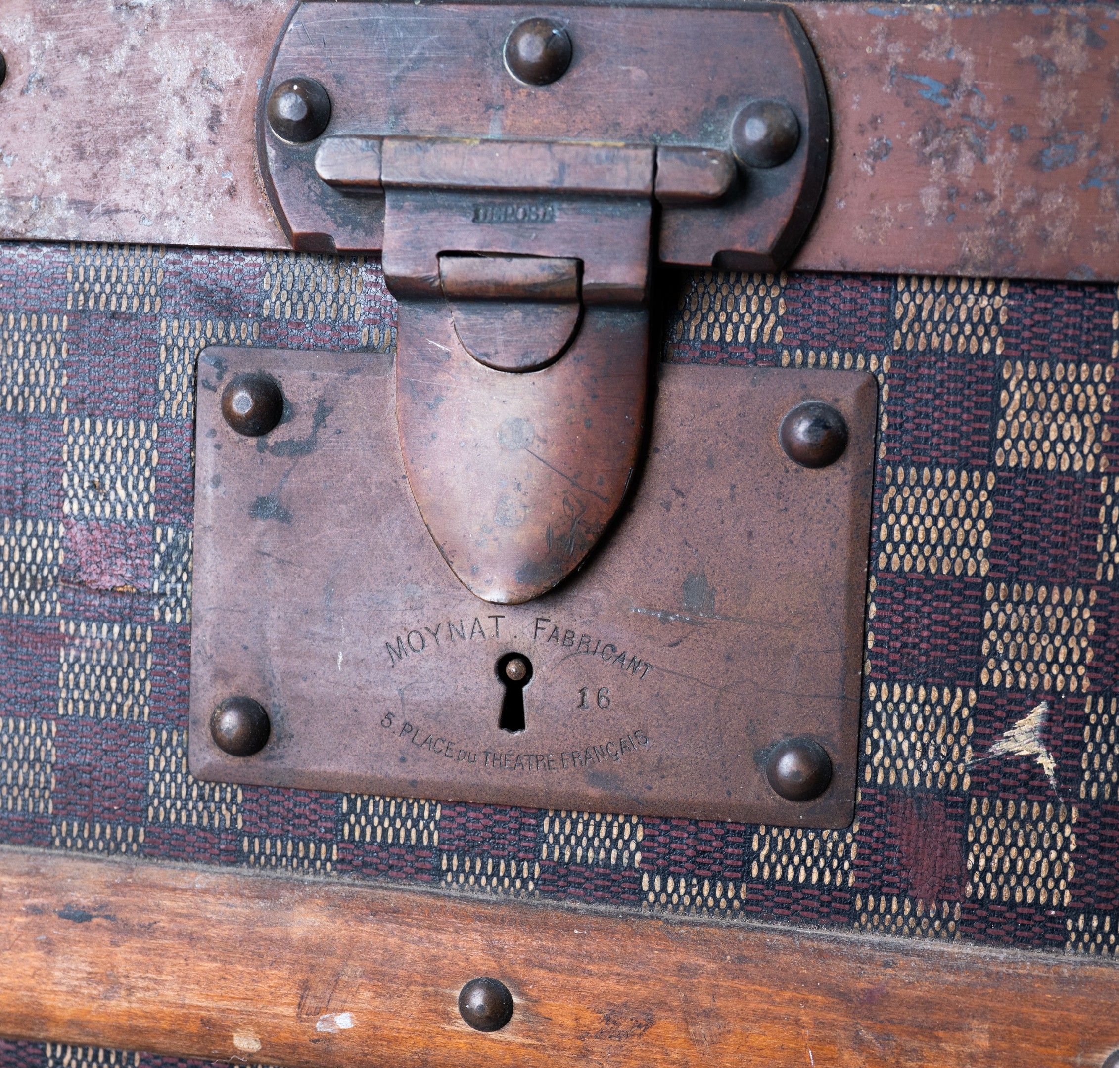 MOYNAT, Paris, wooden travel trunk covered with waxed canvas…