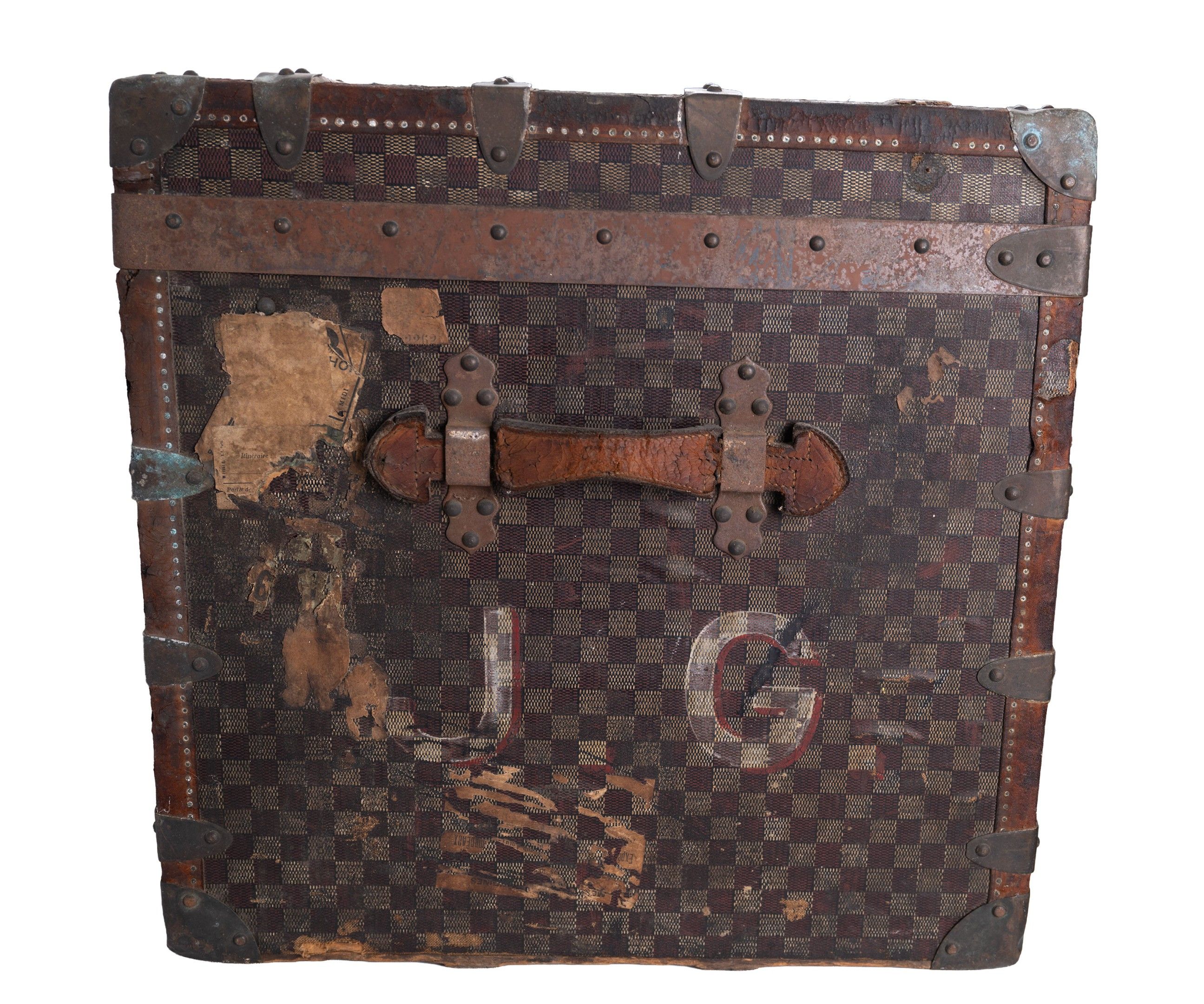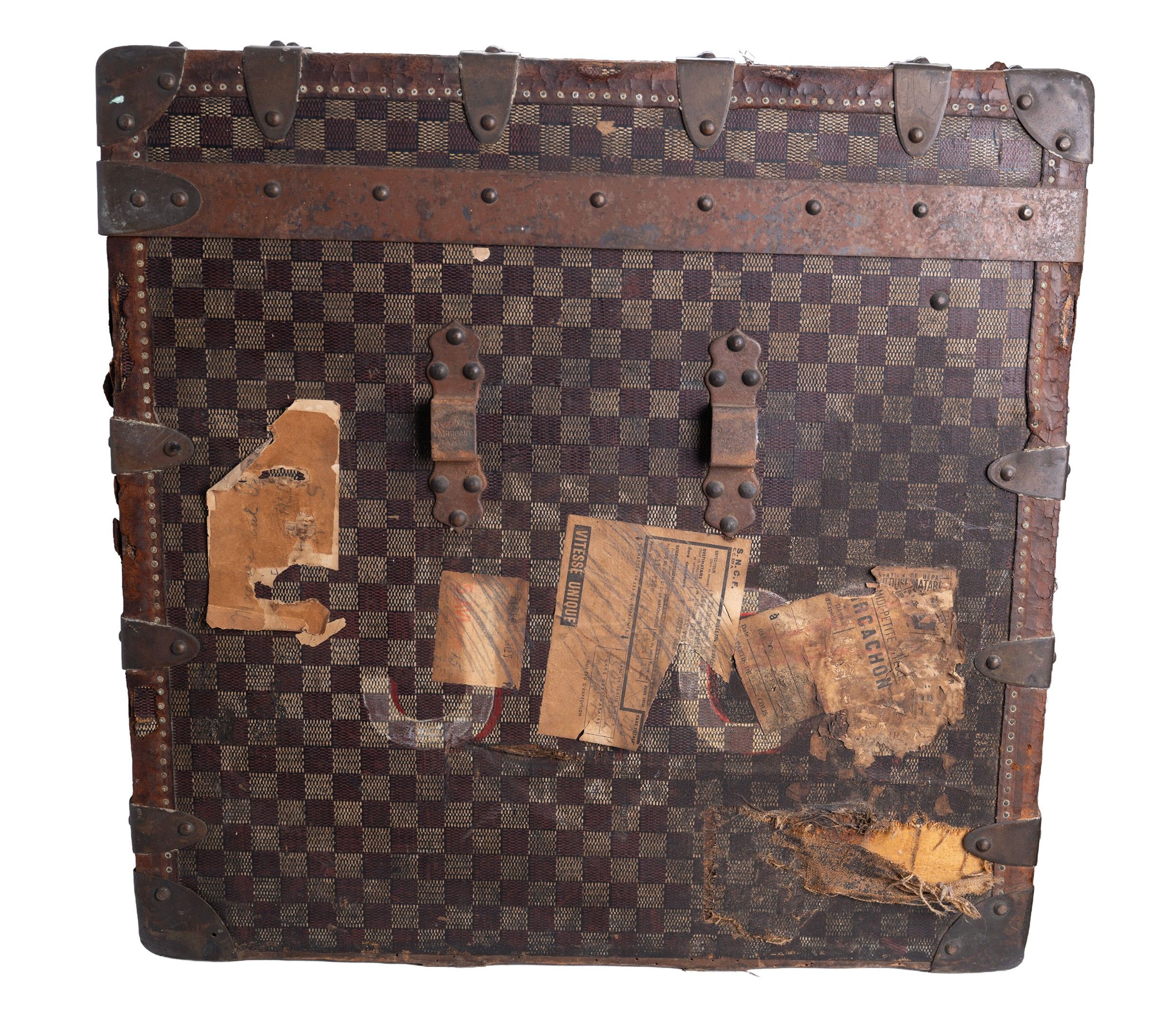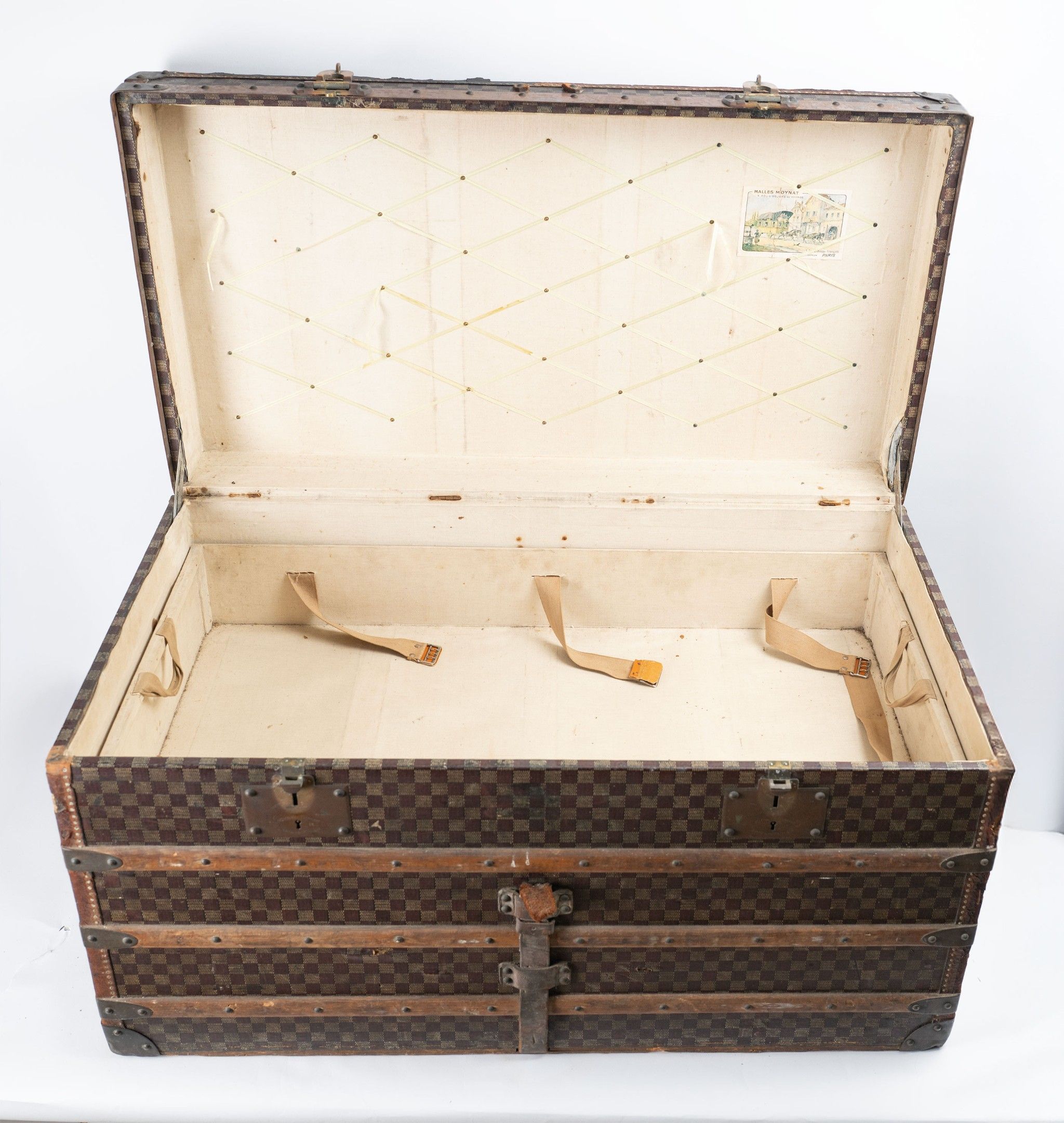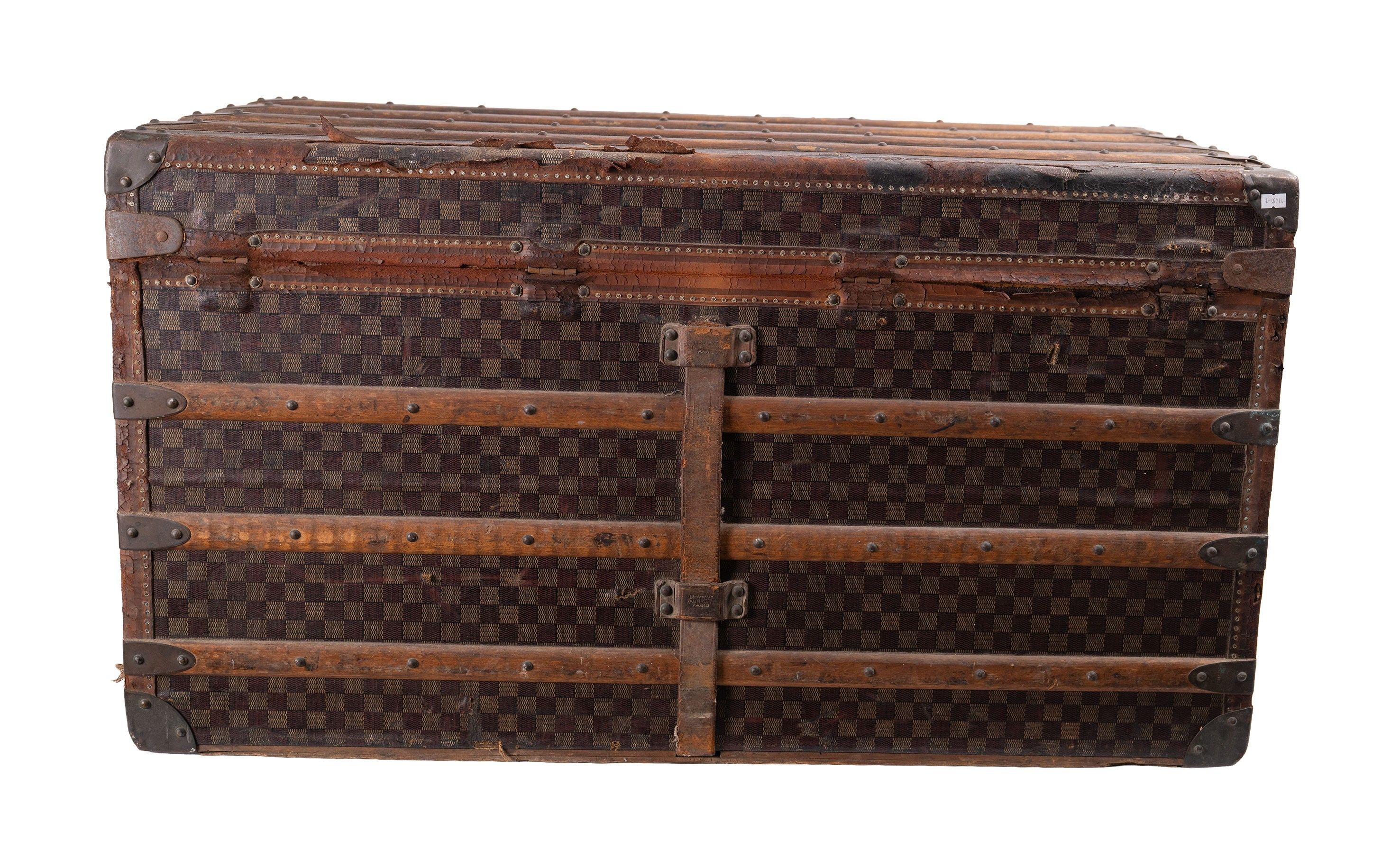 MOYNAT, Paris, wooden travel trunk covered with waxed canvas…