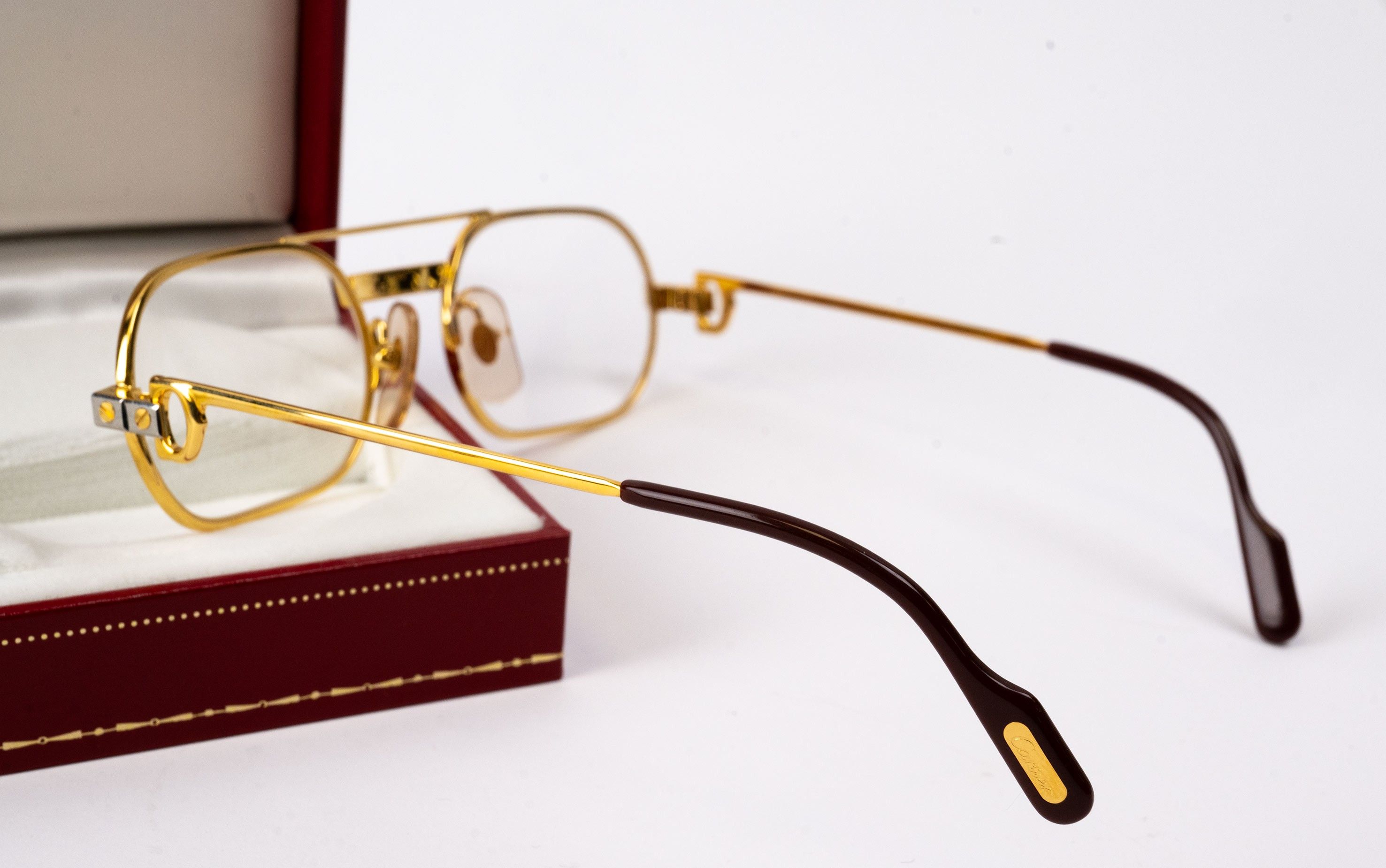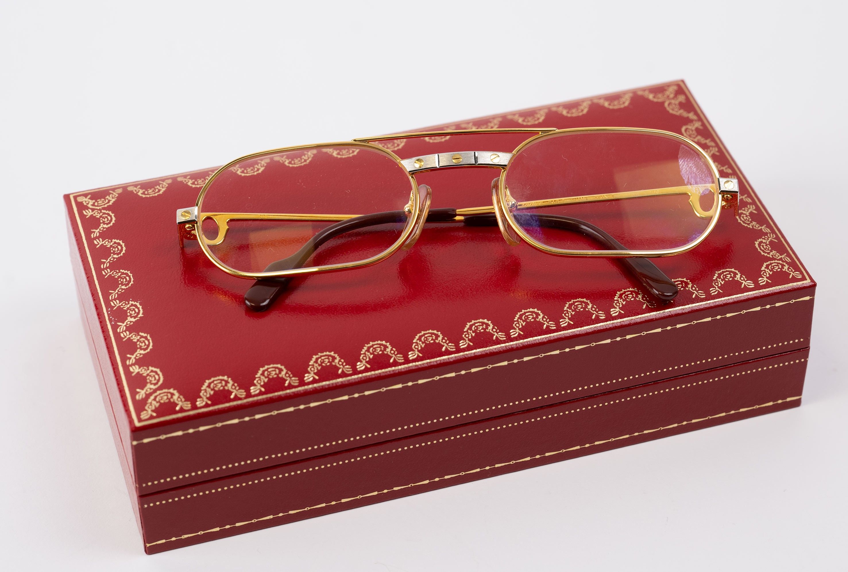 CARTIER, Paris, pair of Must de Cartier magnifying glasses, low correction, with guarantee card, original document and box, black leather document holder unmarked is attached