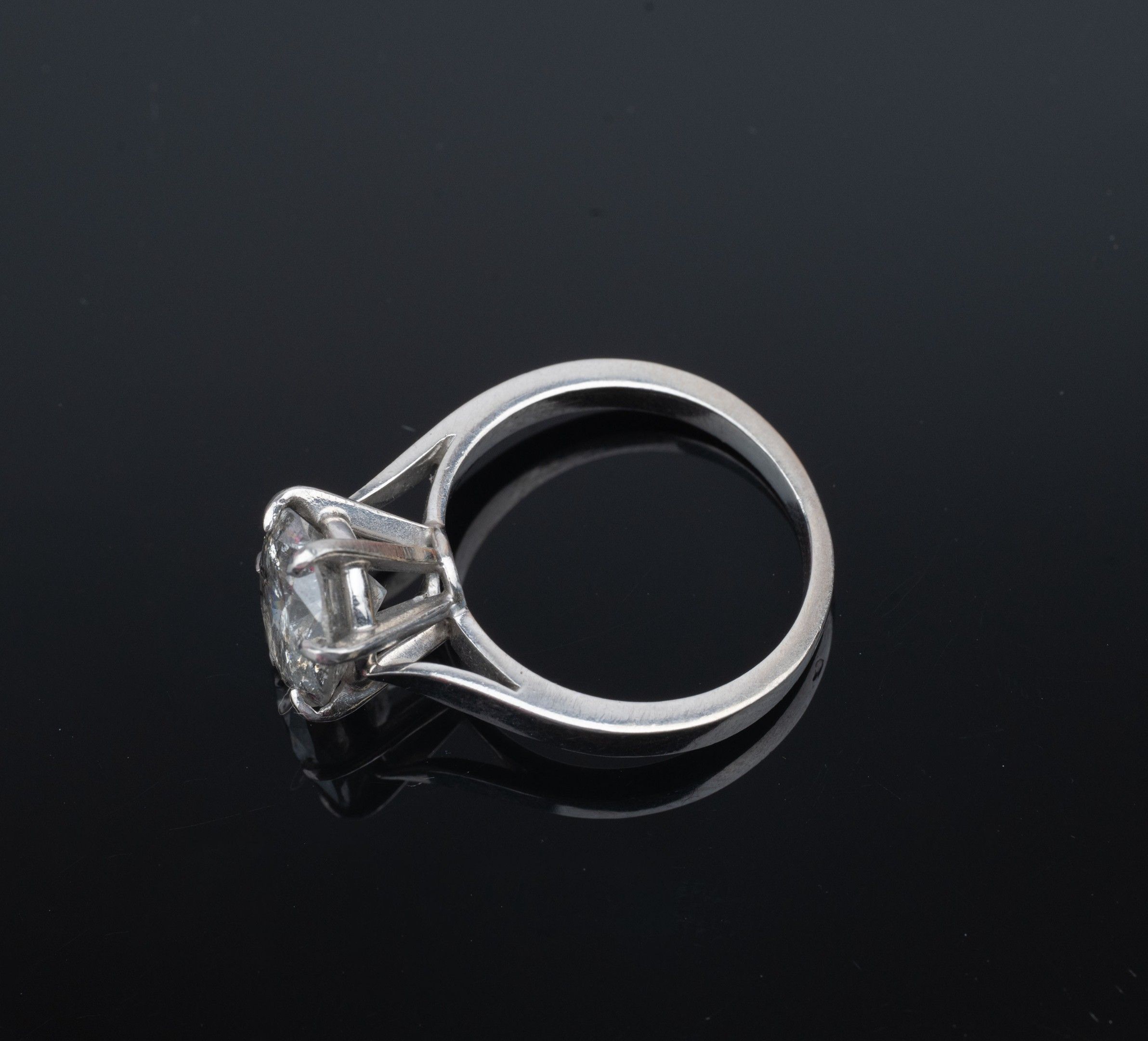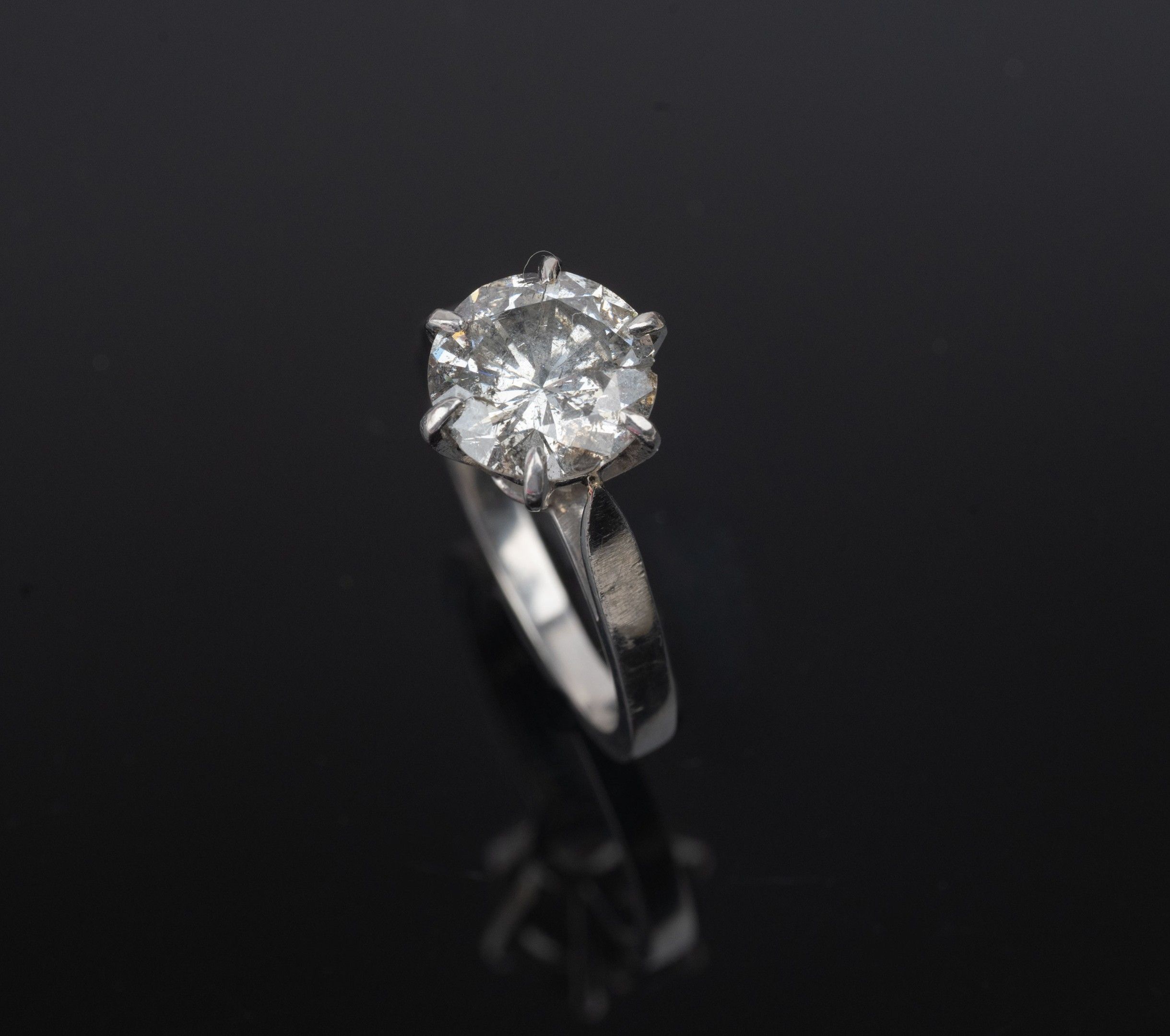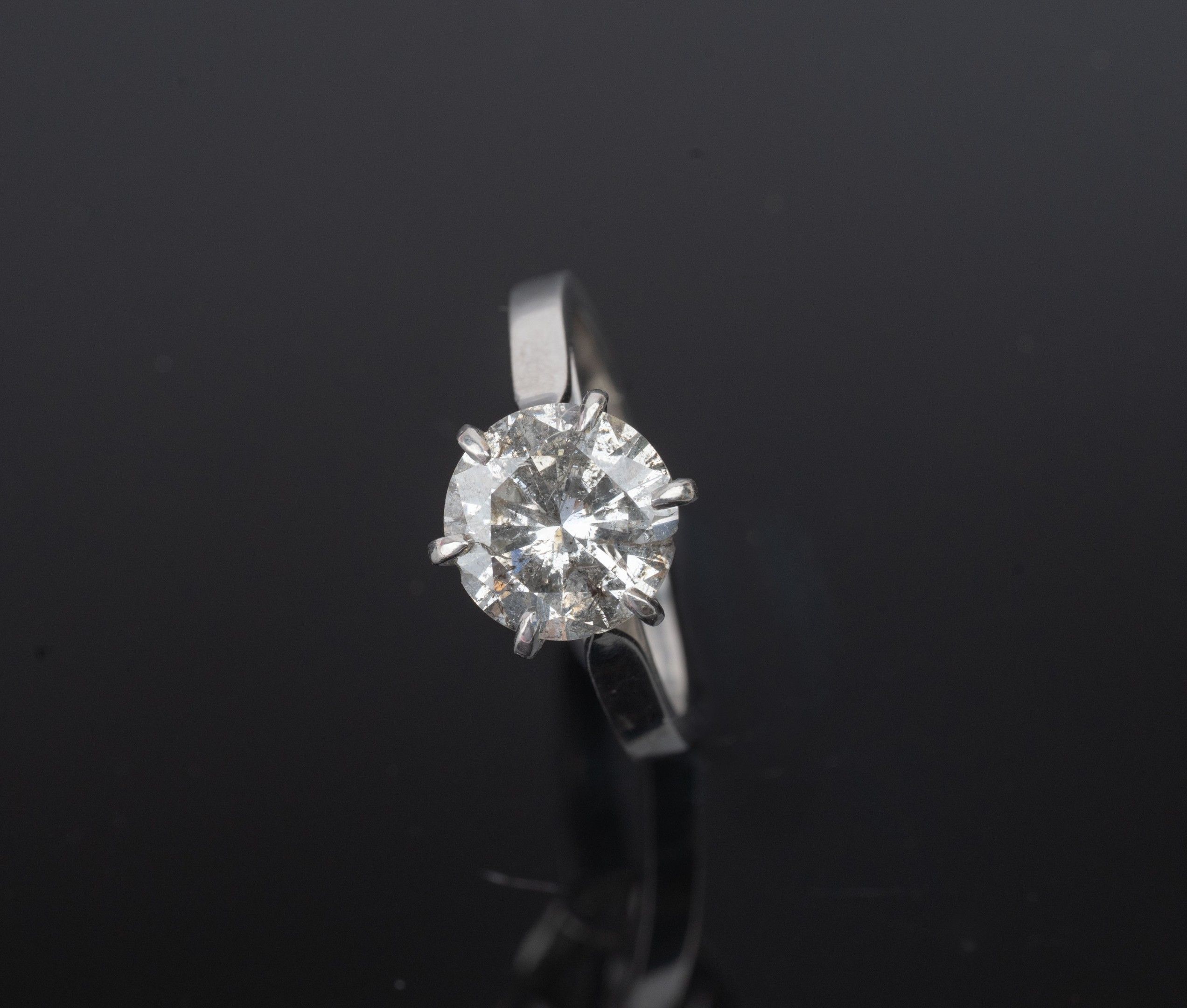 Ring in 850 thousandth platinum with a round brilliant-cut diamond in the centre between six claws.