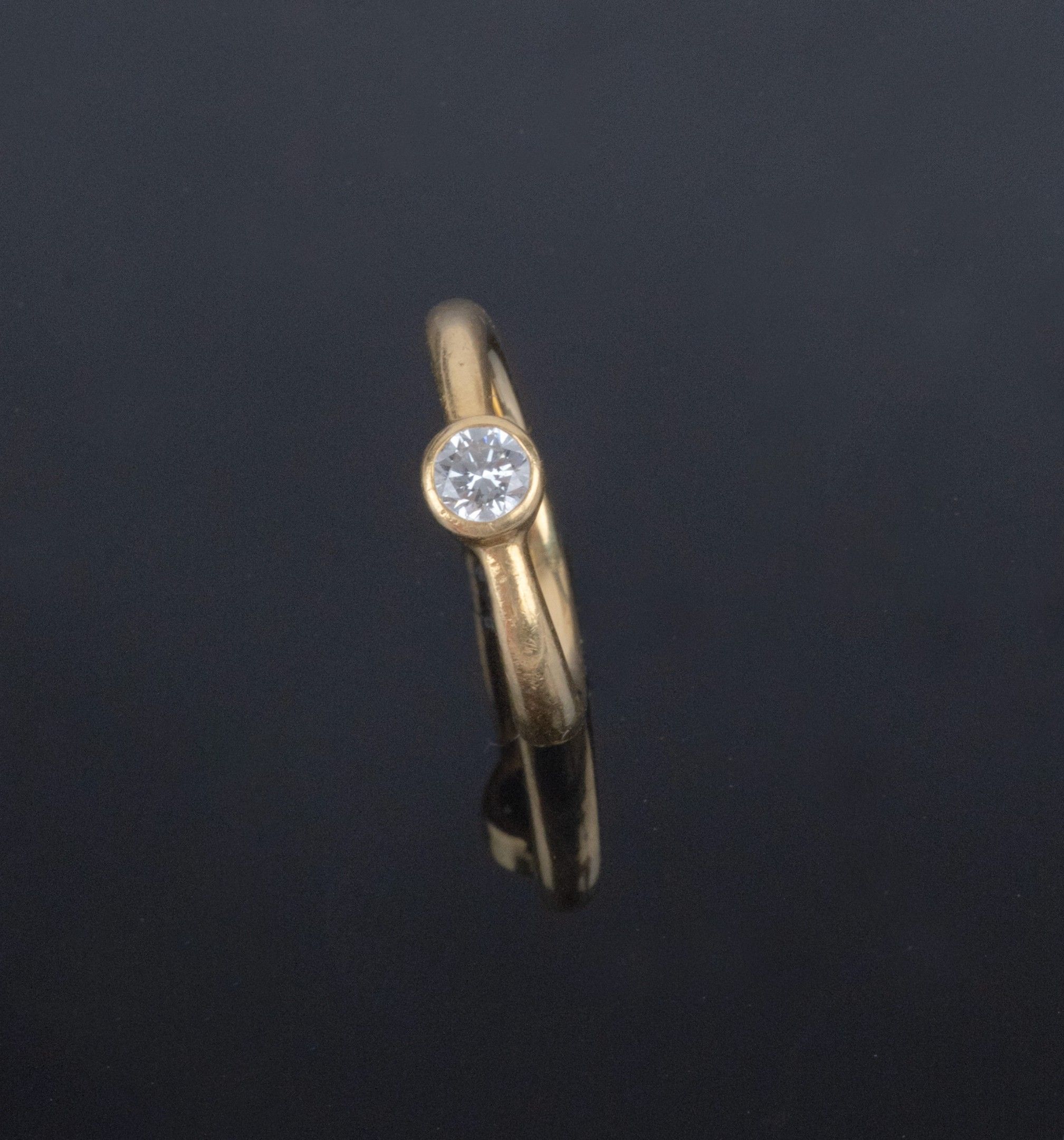 Jens HANSEN, Ring in 18 carat gold (750/1000th) set with a solitaire brilliant-cut diamond, (D: 4.24 mm), gross weight: 6.09 g, finger size: 50, in its natural wood case