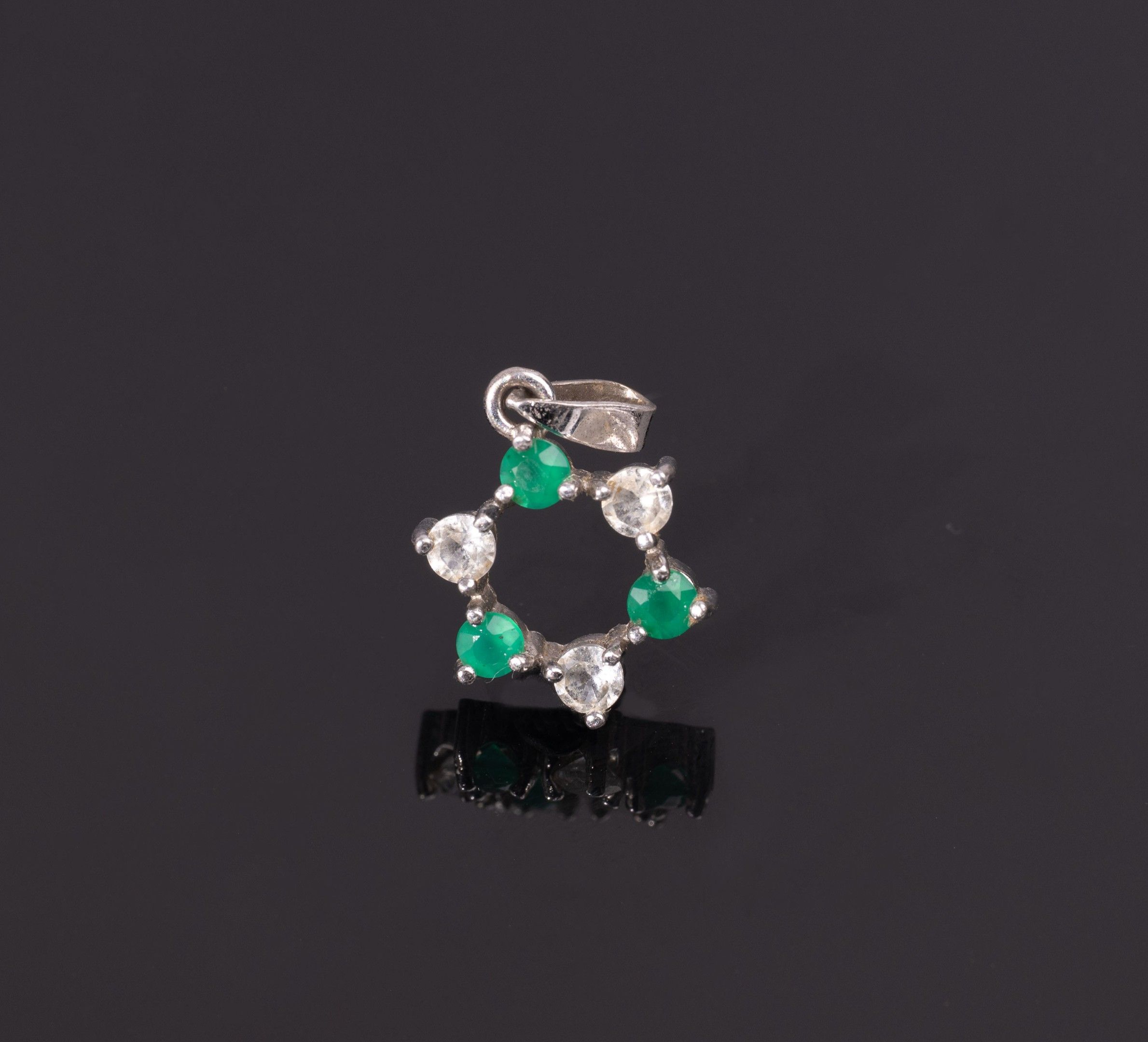 Small pendant in white gold 750/1000 in the shape of a 6-pointed star set with diamonds and emeralds, weight: 1.22g