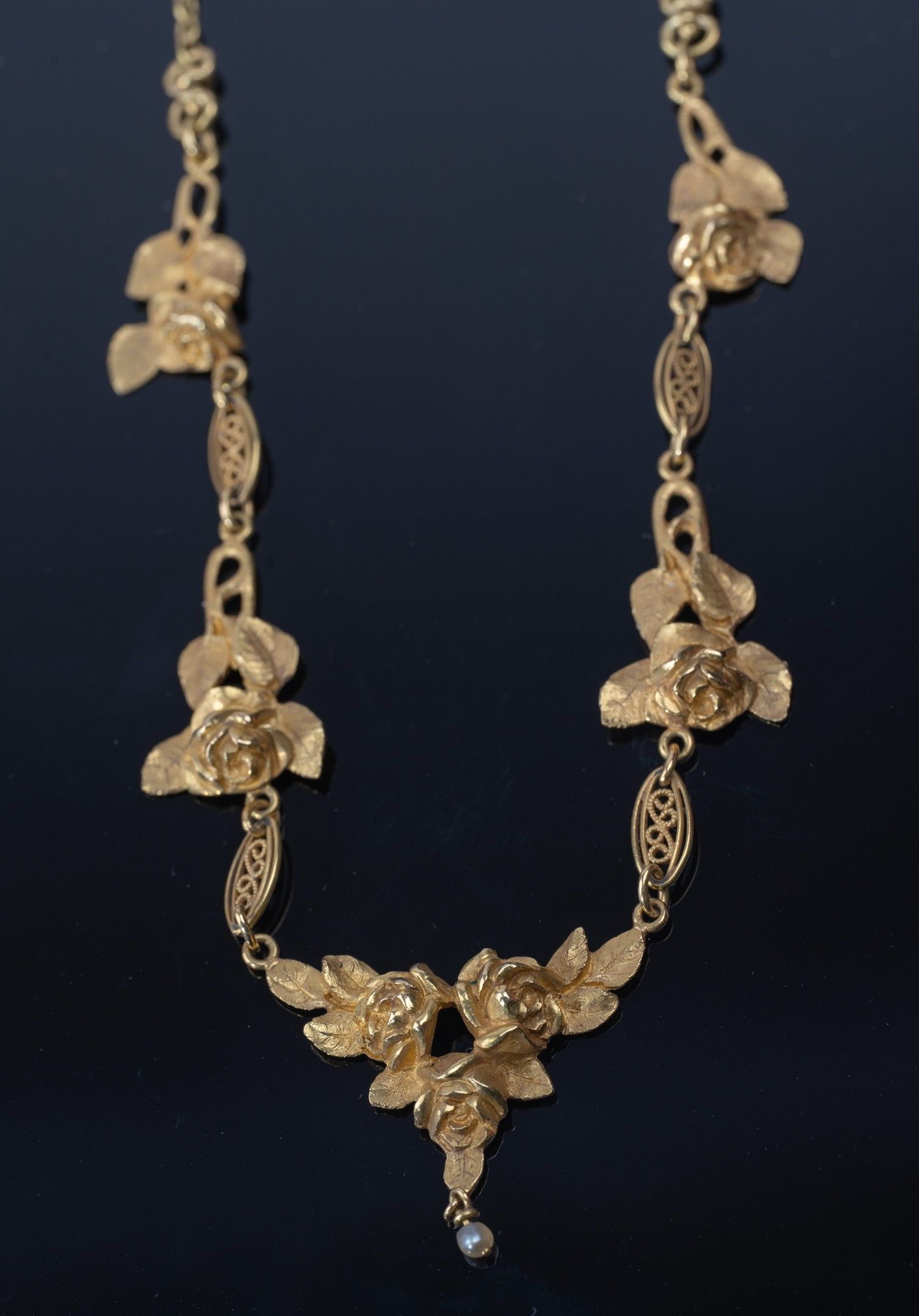 Necklace in 18-carat yellow gold with rose-shaped links, L: 34 cm, Weight: 12.30 g