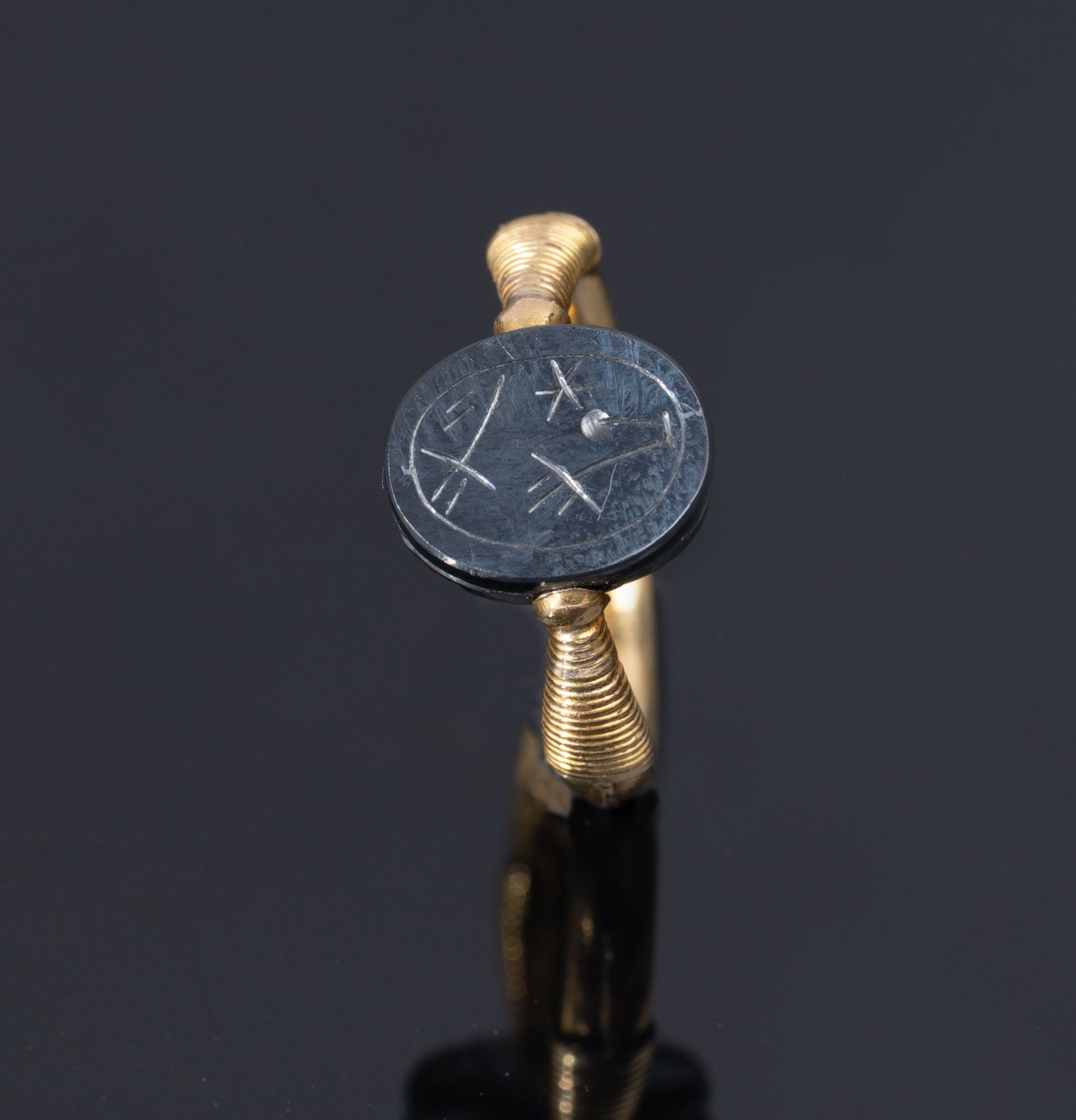 ring in yellow gold 750/1000th (18 carats) with Egyptian sca…