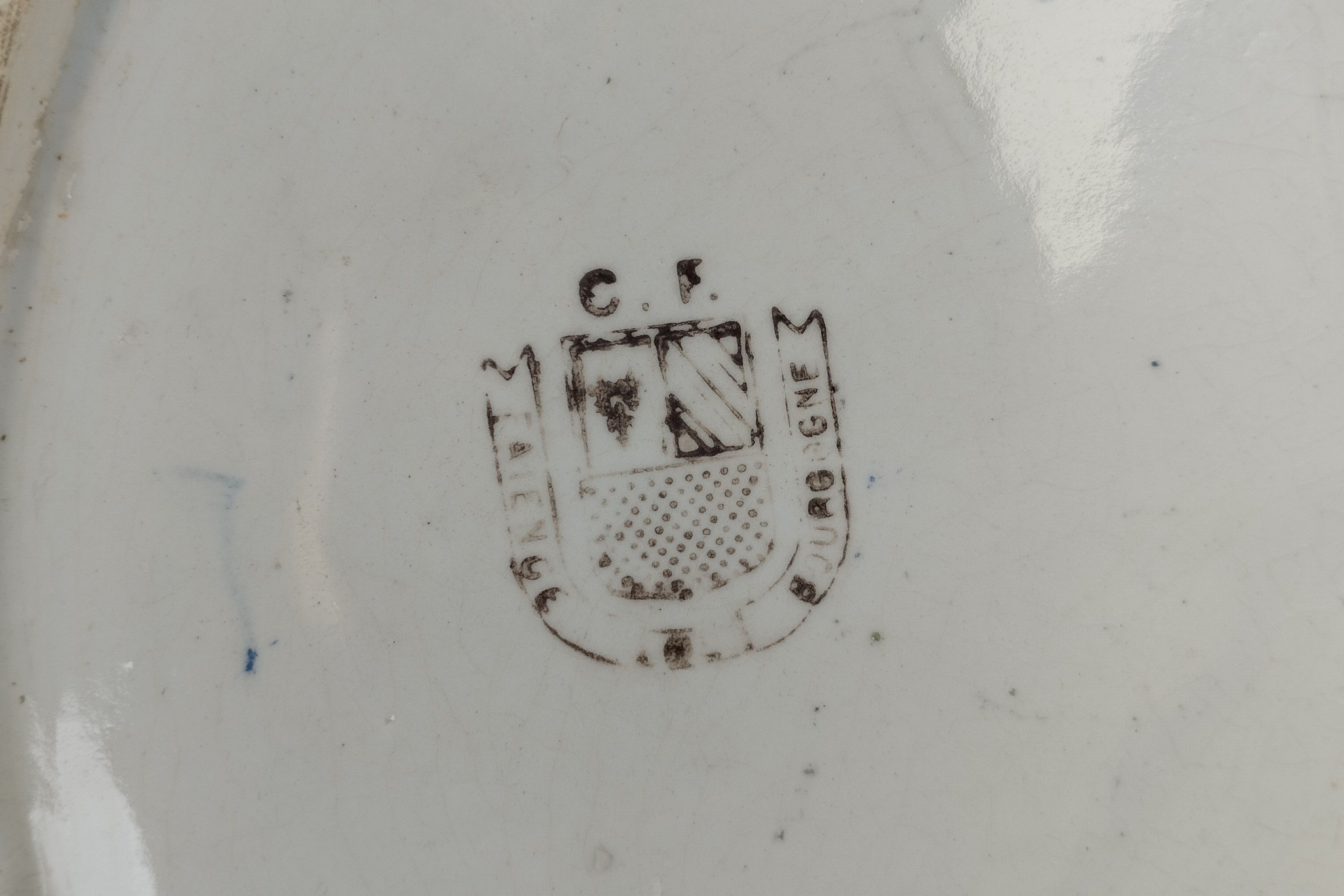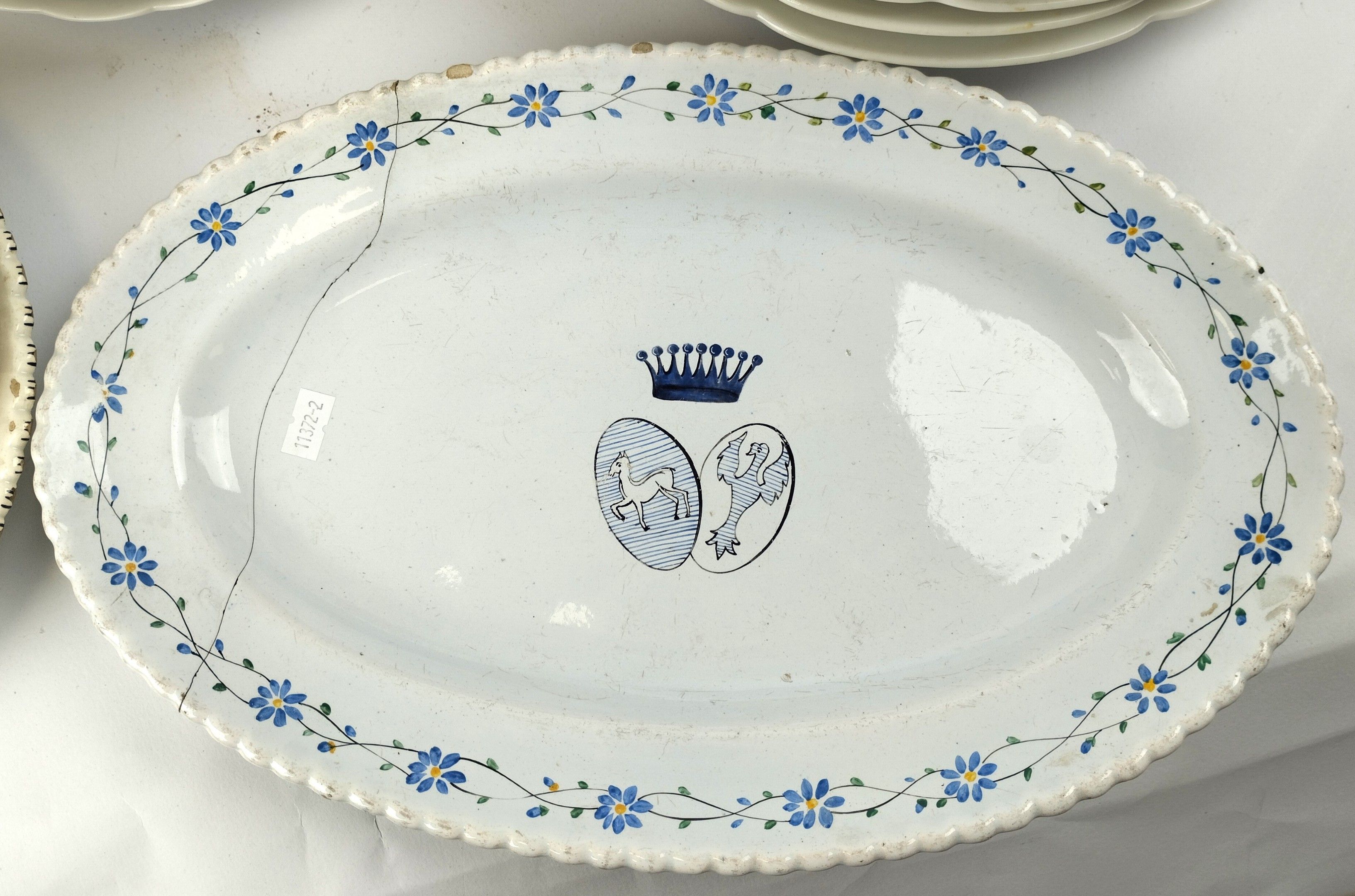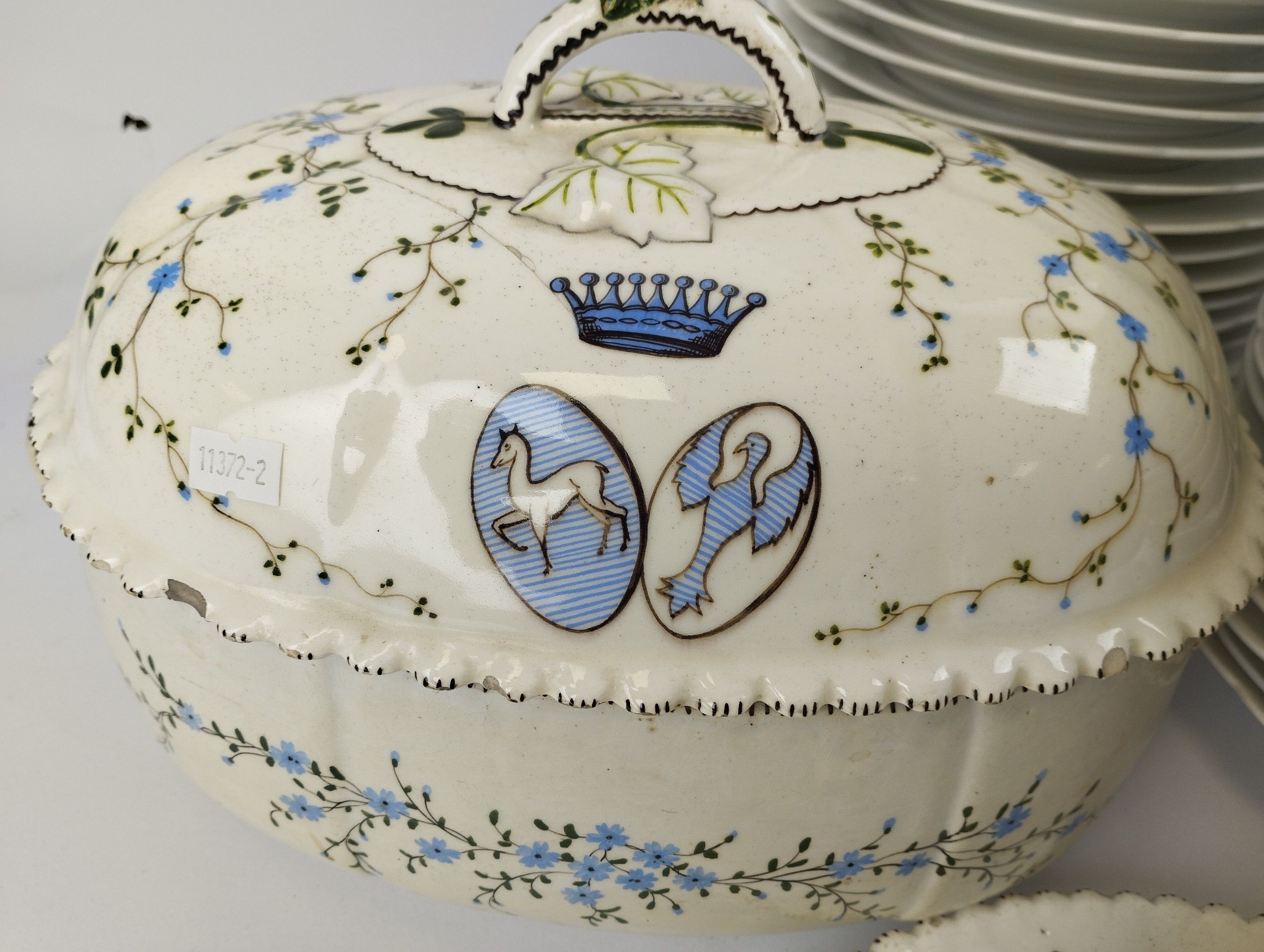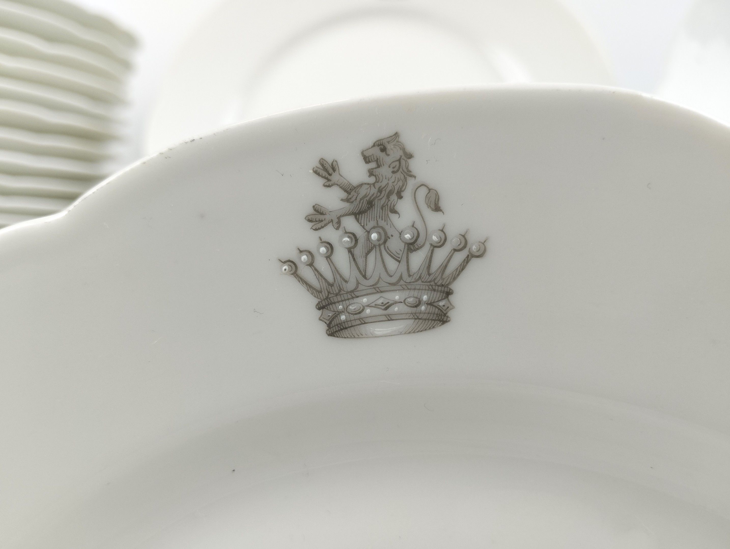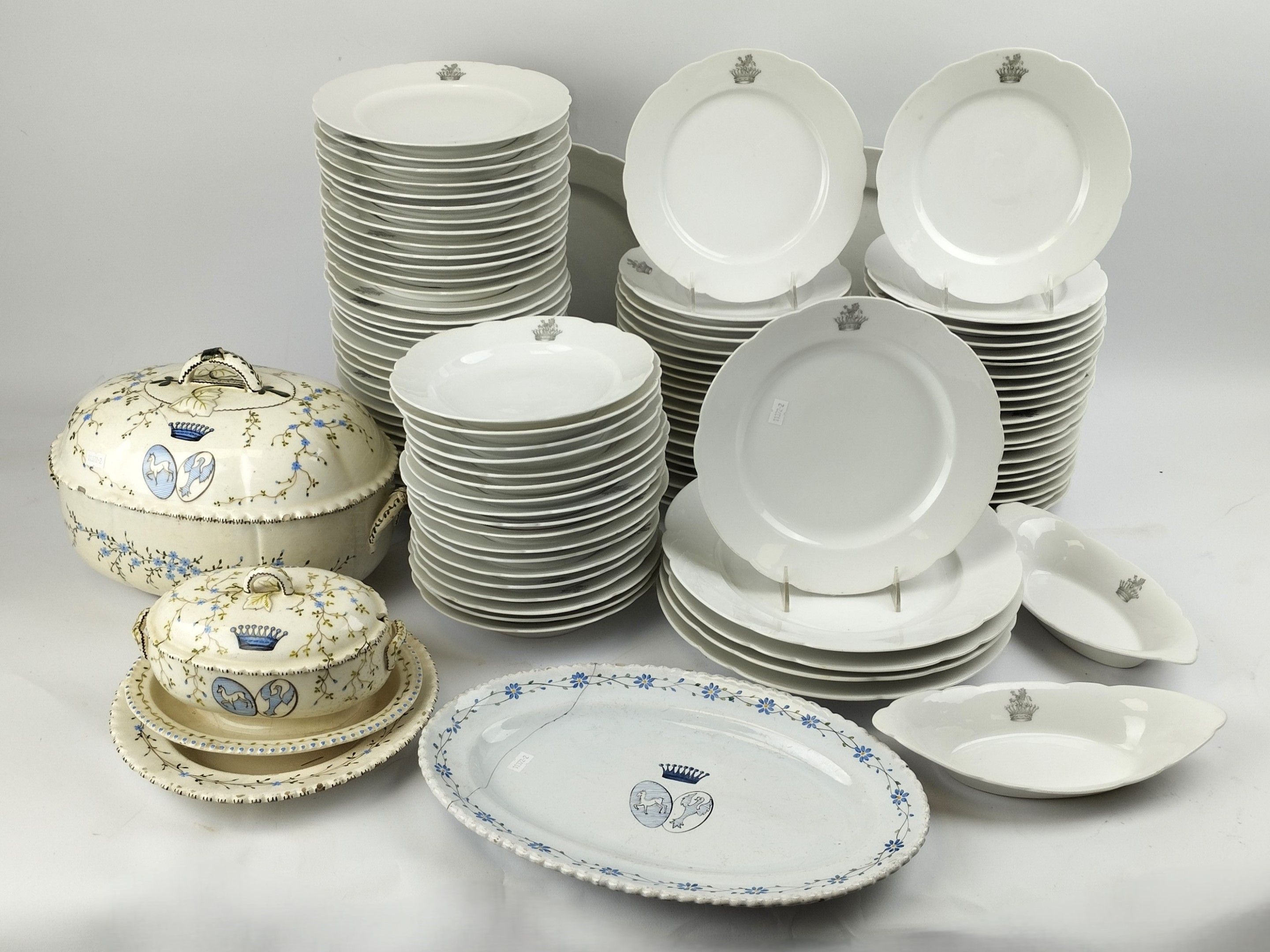 PREVEL, Metz, White porcelain dinner service with the Schenck family coat of arms, a crown surmounted by a lion bust and comprising :