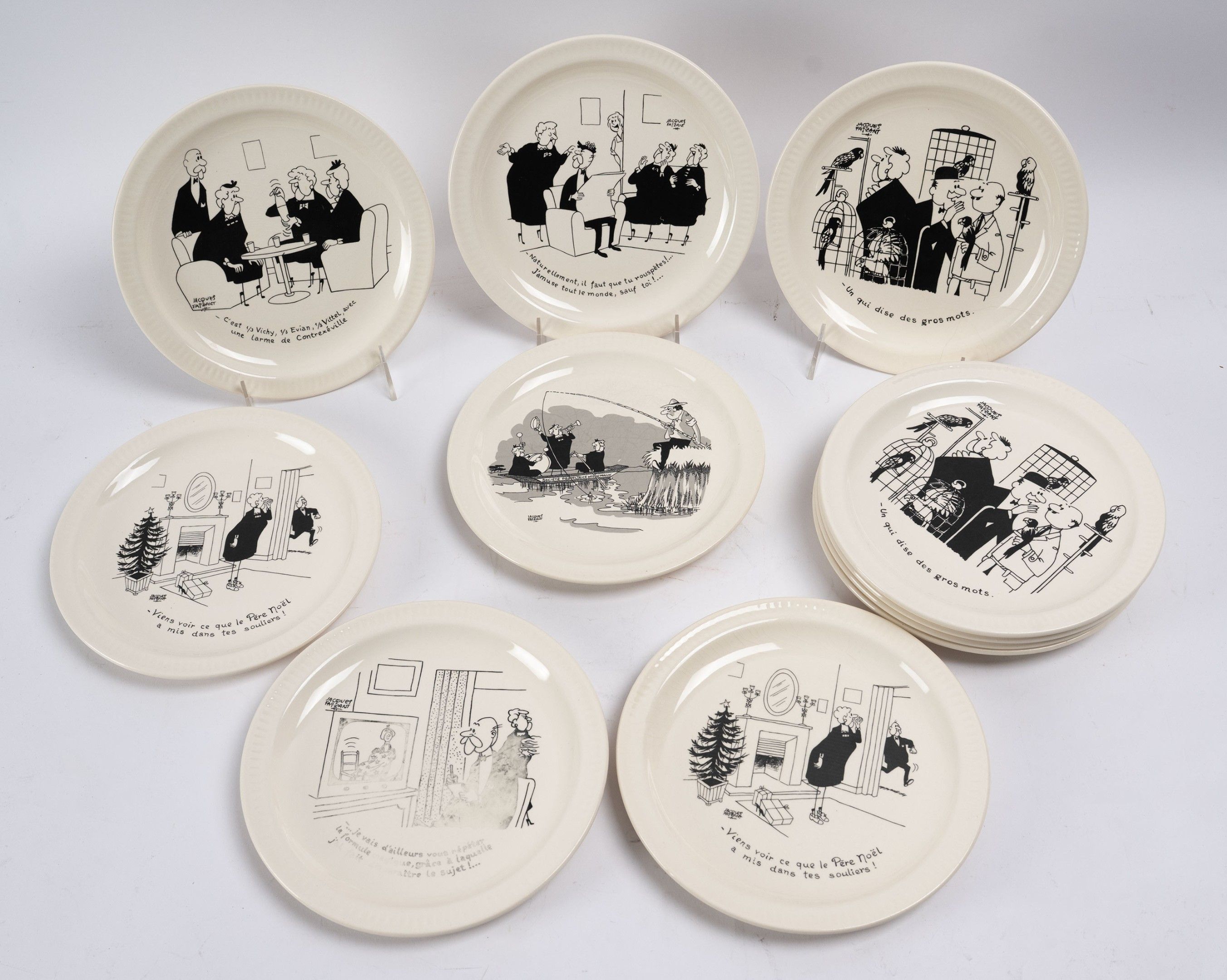 Jacques FAIZAN, Faïencerie de St AMAND, 11 illustrated desse…