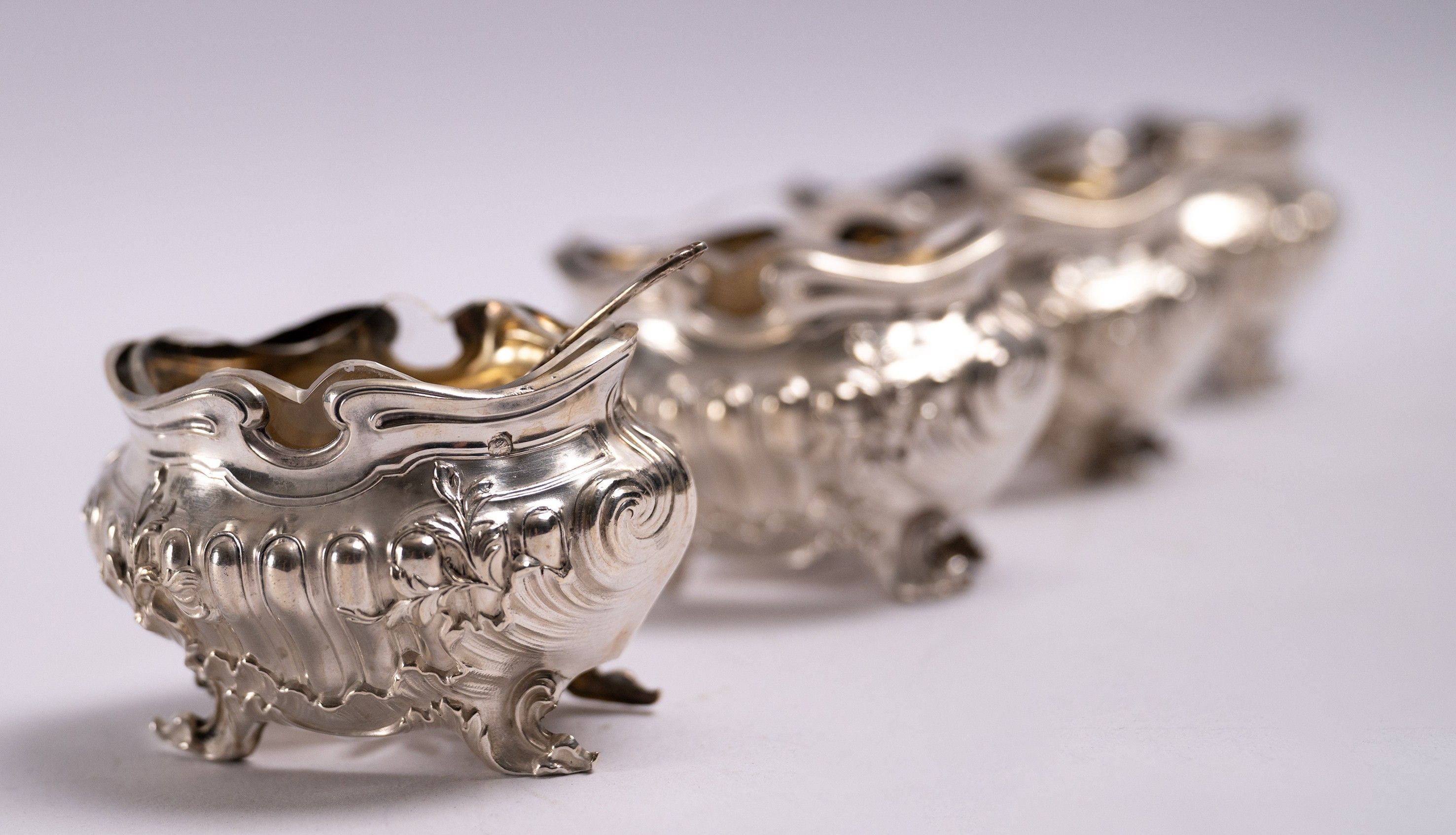 4 925/1000th silver salverons with rocaille decoration and cut crystal bowls. Weight of silver: 9.7g