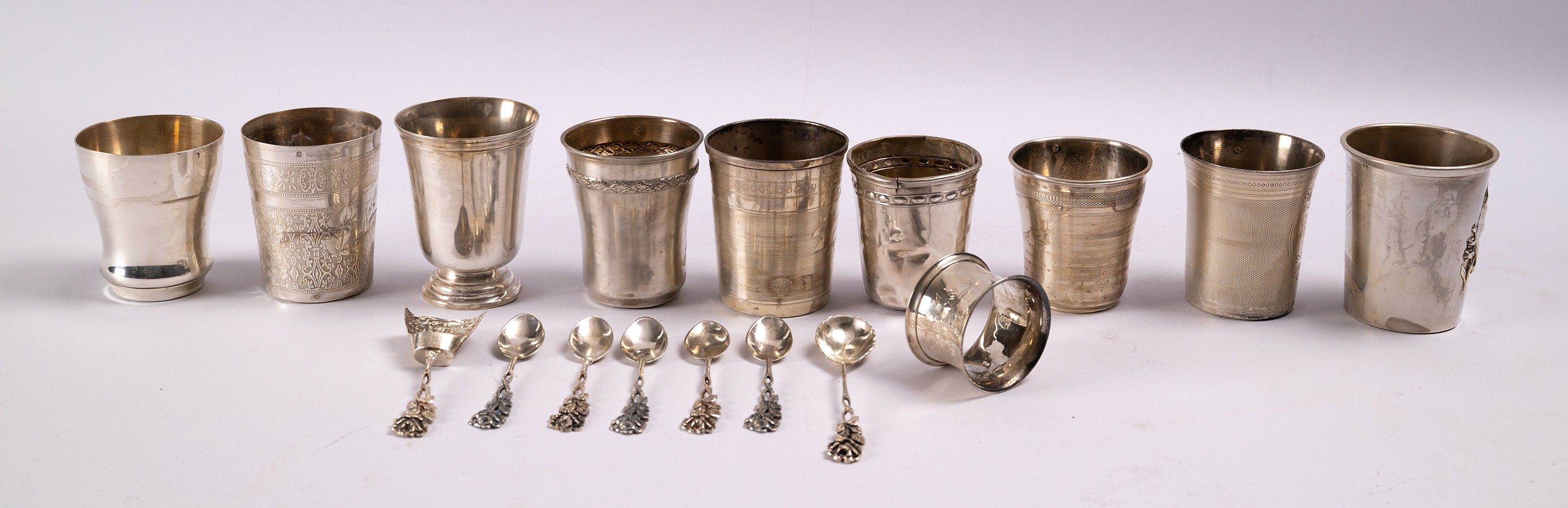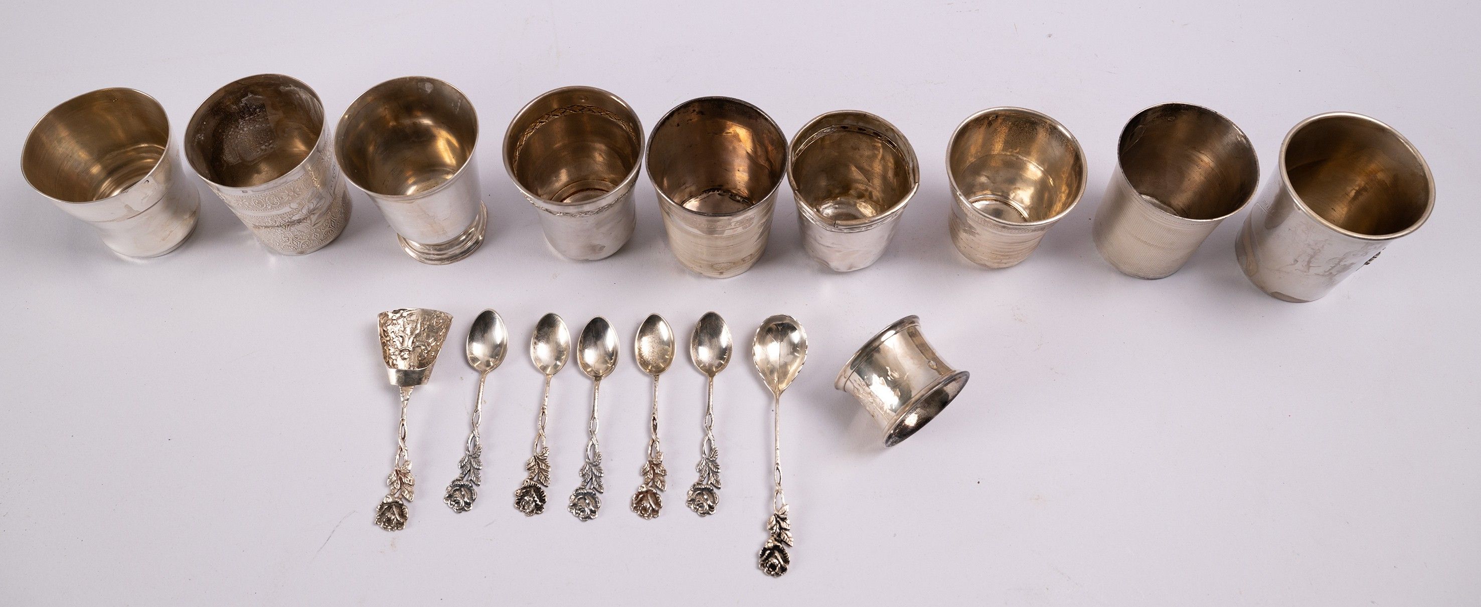 8 kettledrums, 7 spoons and a napkin ring in 925/1000 sterli…