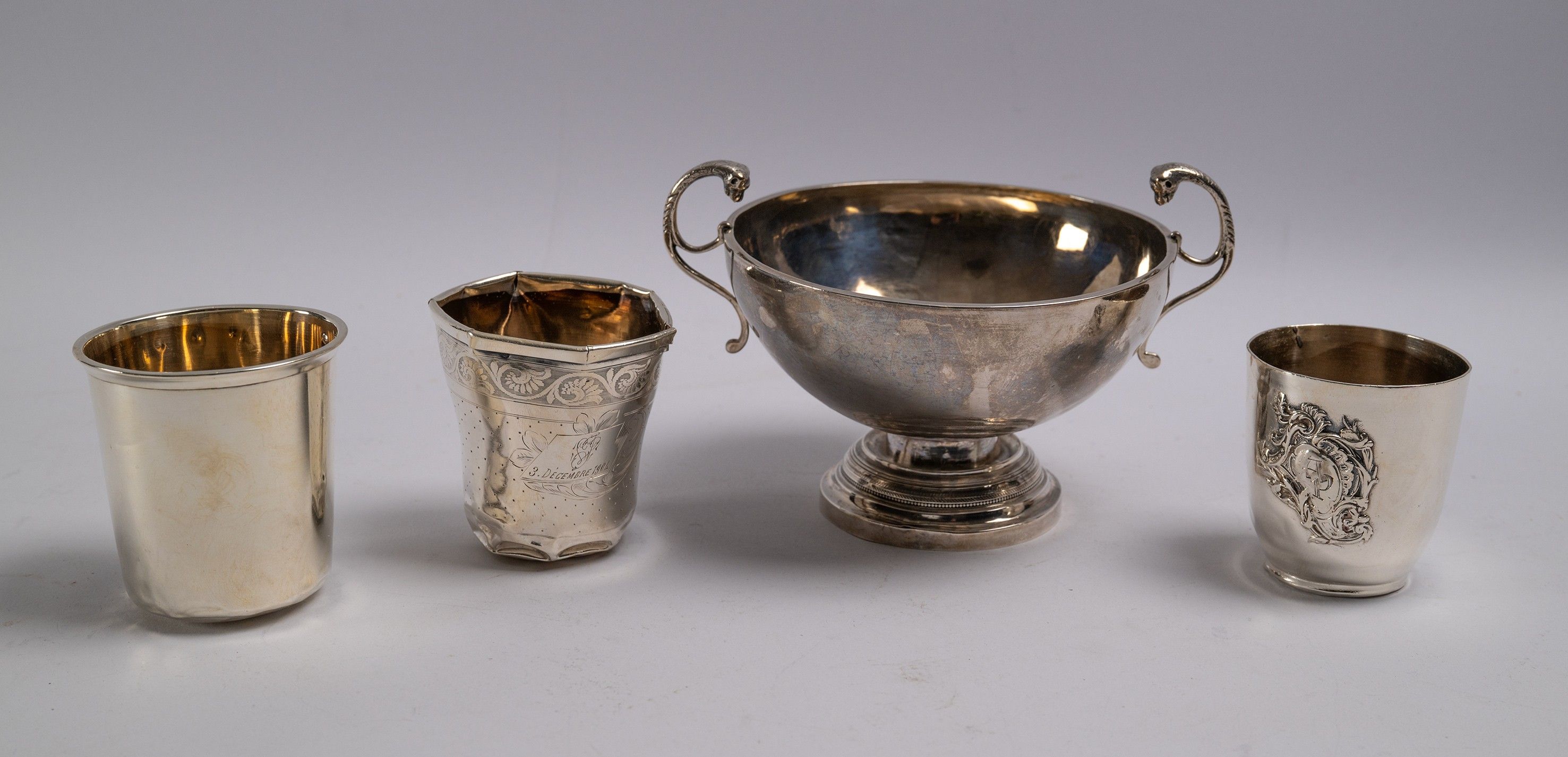 Wedding goblet and 3 goblets in 925/1000 sterling silver, weight: 348g