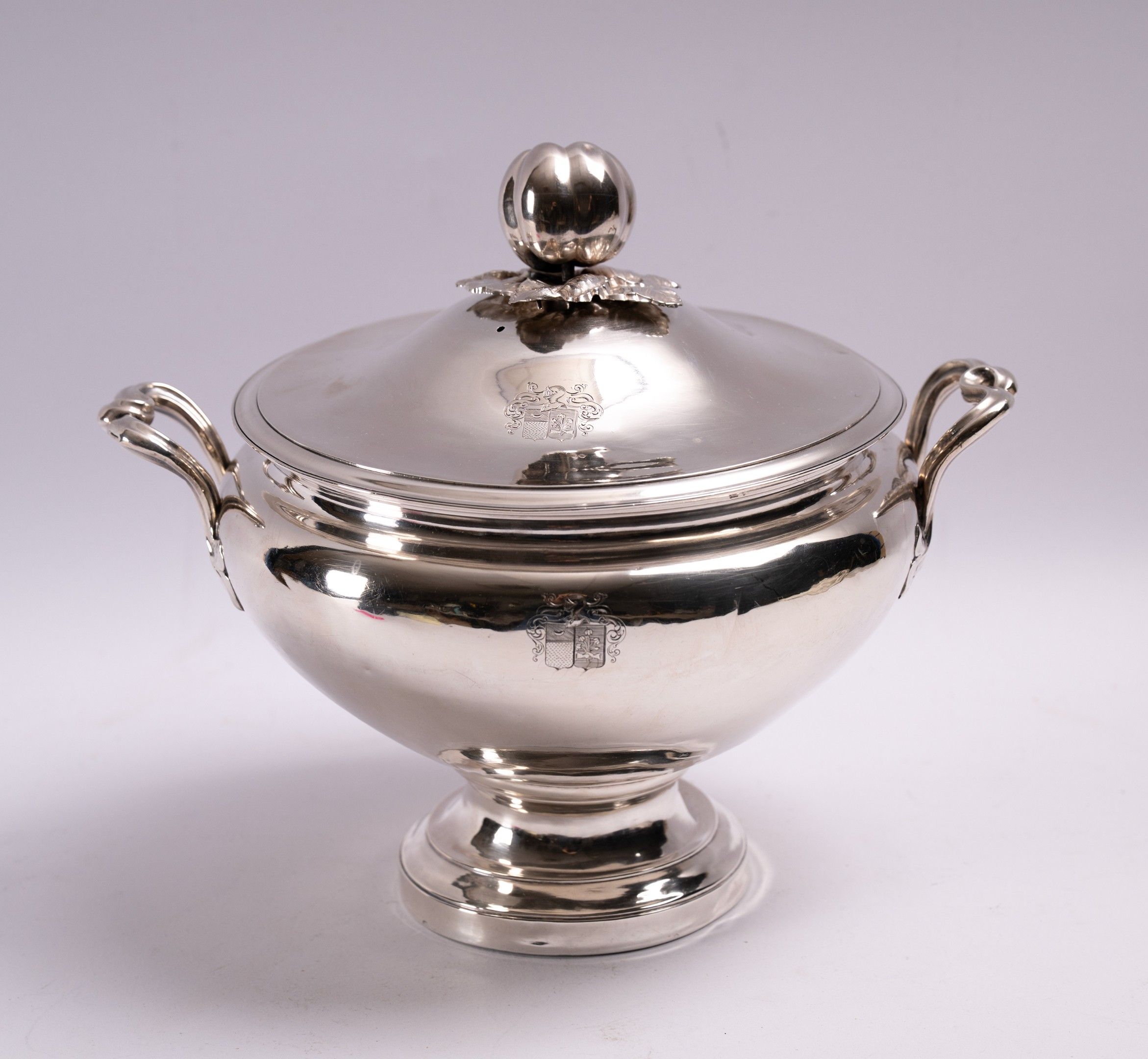 925/1000 silver stock pot with fruit-shaped lid.