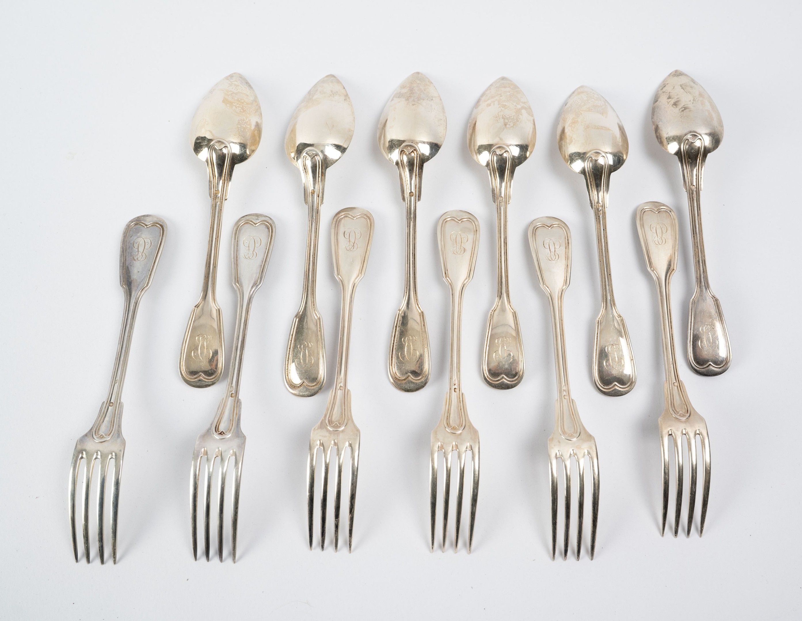 Set of 6 large silver flatware 925/1000, double filets patte…