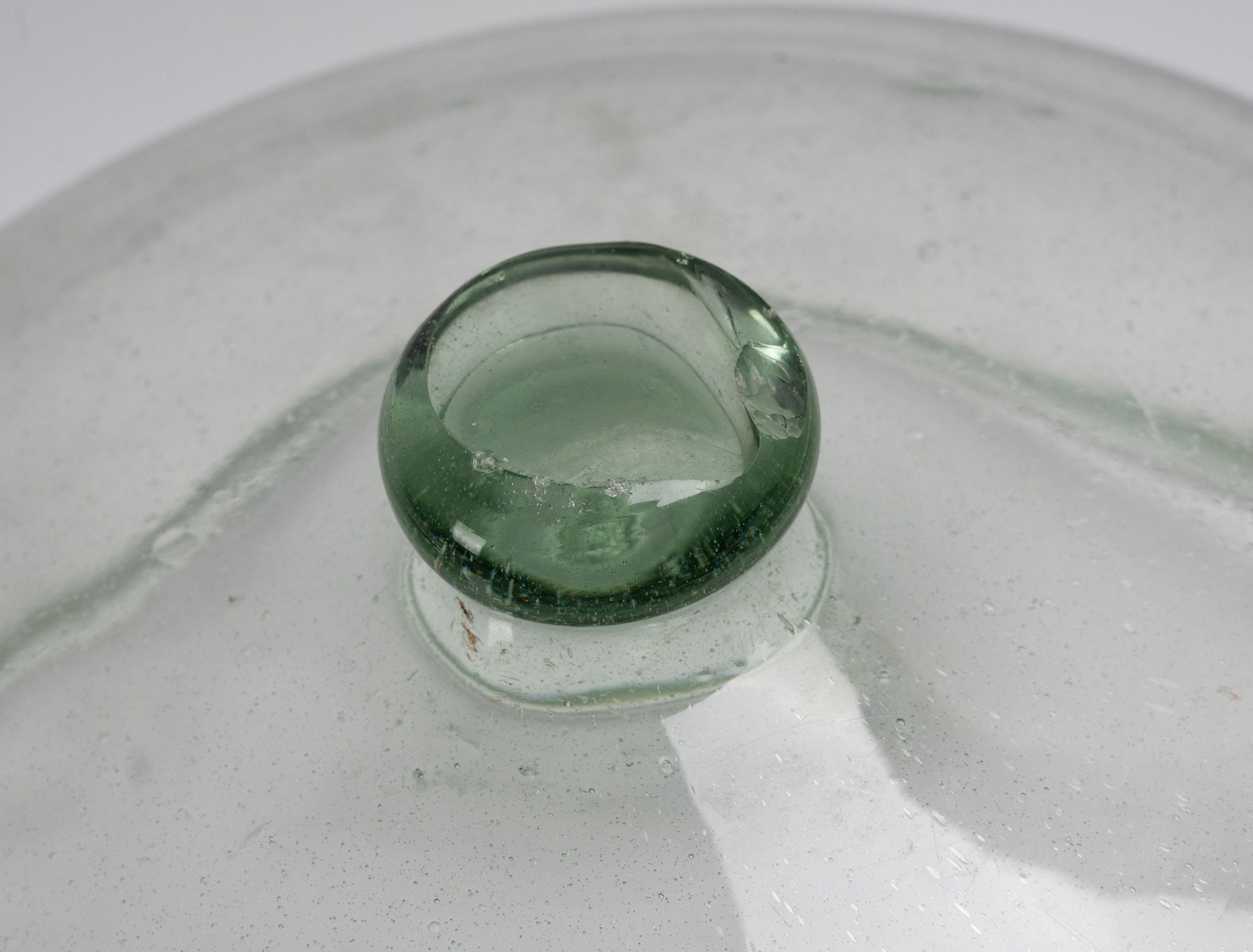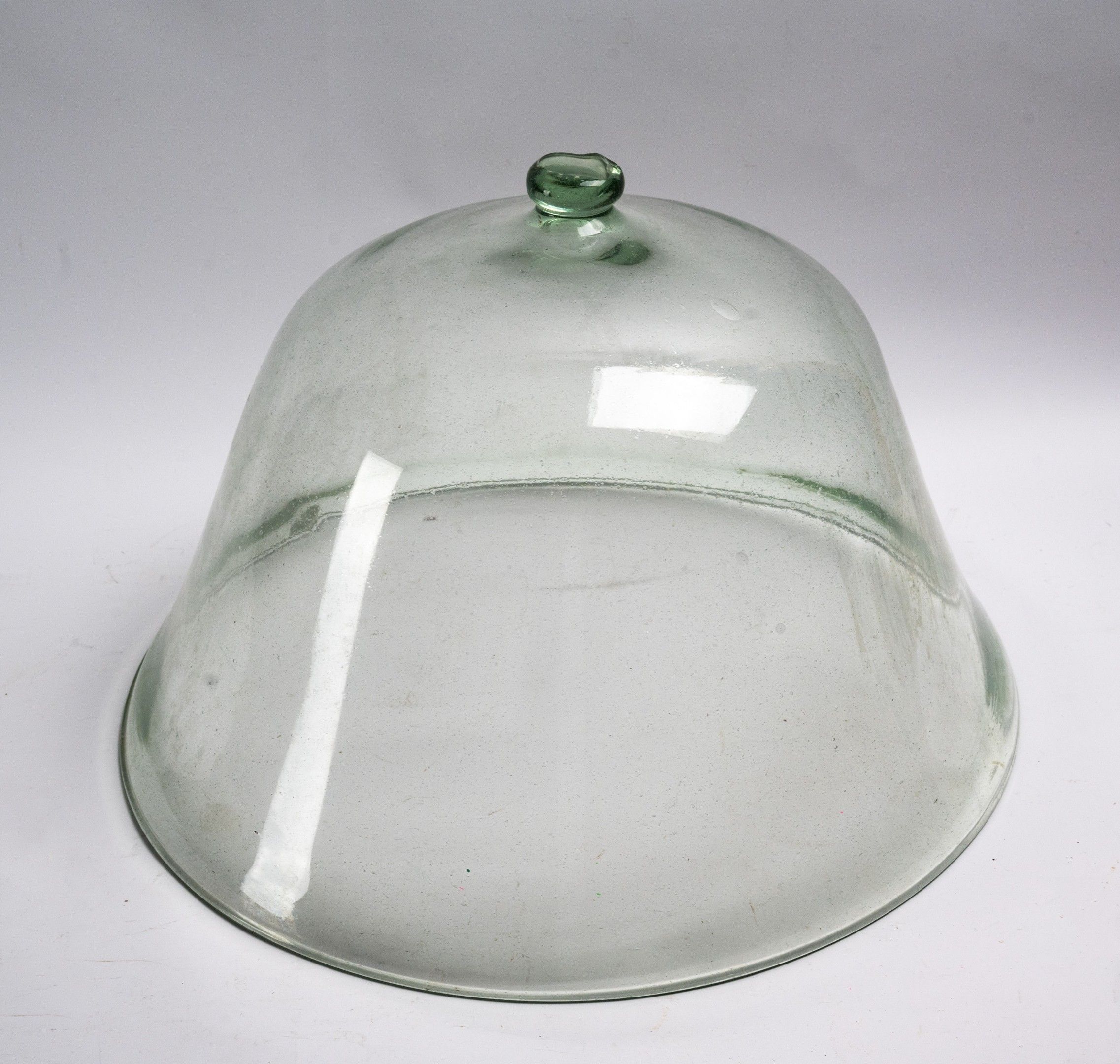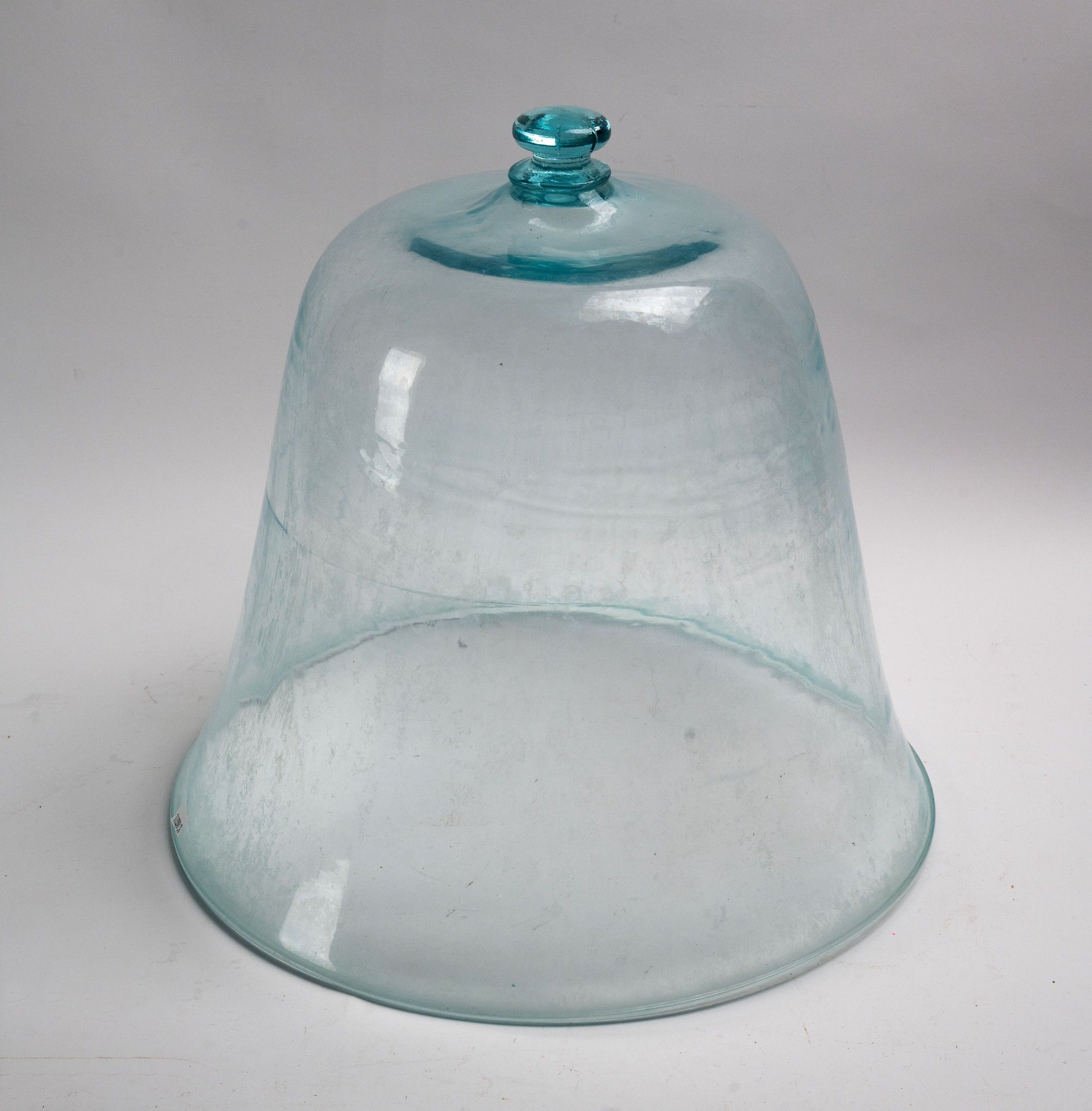Attributed to BIOT, Two large blown glass bells, H: 40 cm, D: 41 cm and H: 33 cm, D: 49.5 cm (damaged socket).