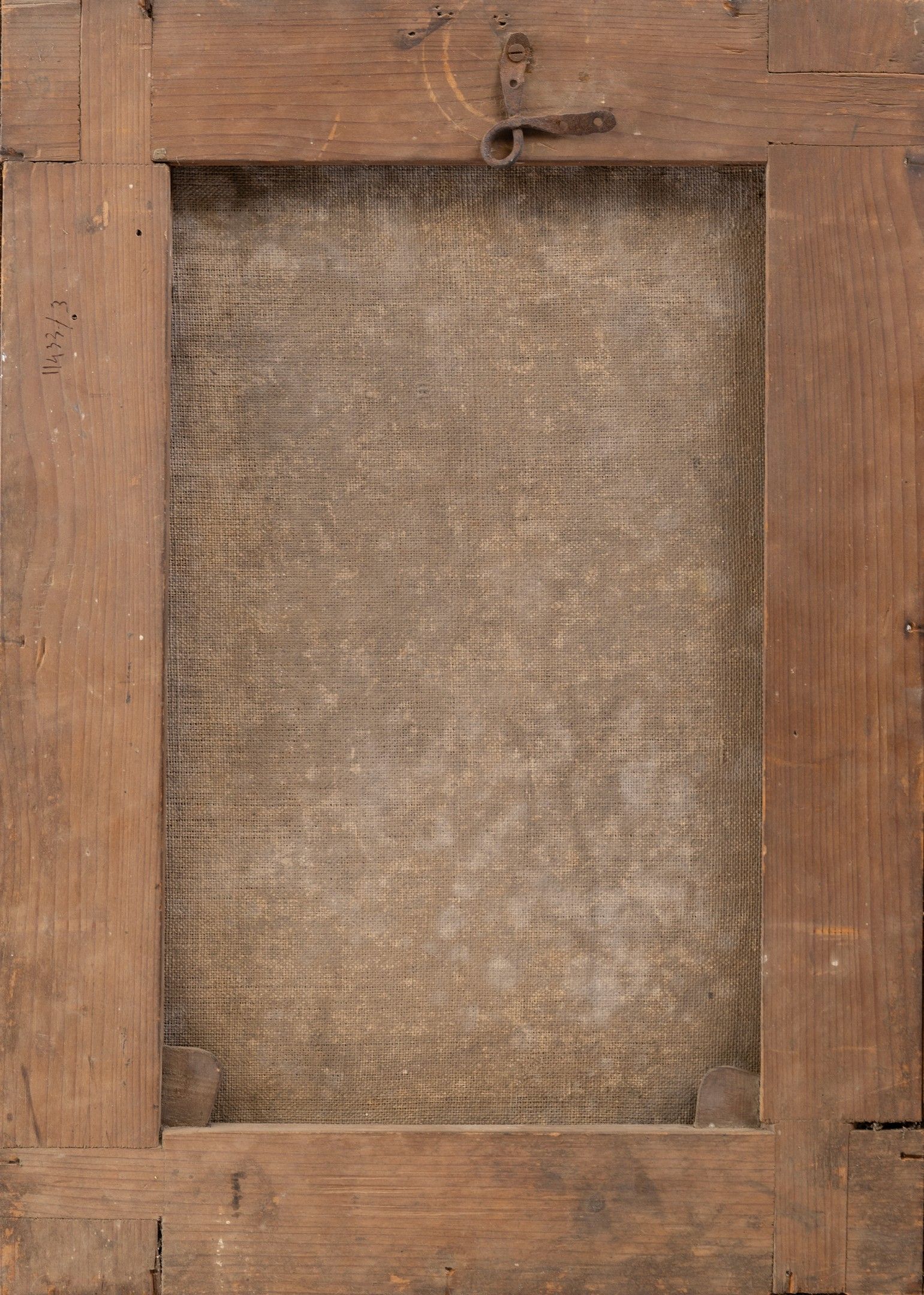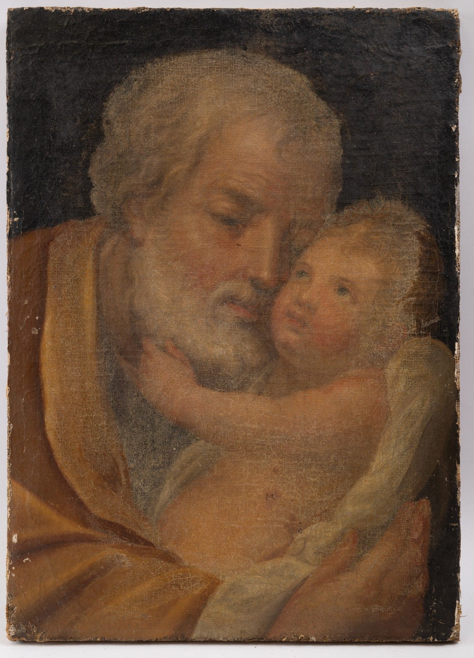 17th century French school, Joseph and the Angel, oil on canvas, H: 49 cm, W: 35 cm, restorations, foxing