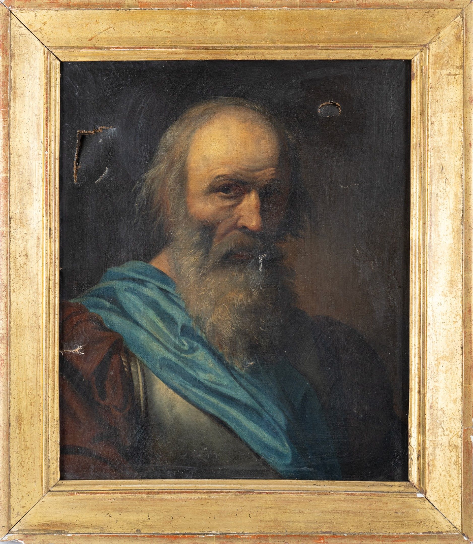 18th century French school, "The Old Soldier", oil on canvas, H: 65 cm, W: 54 cm, visible accidents