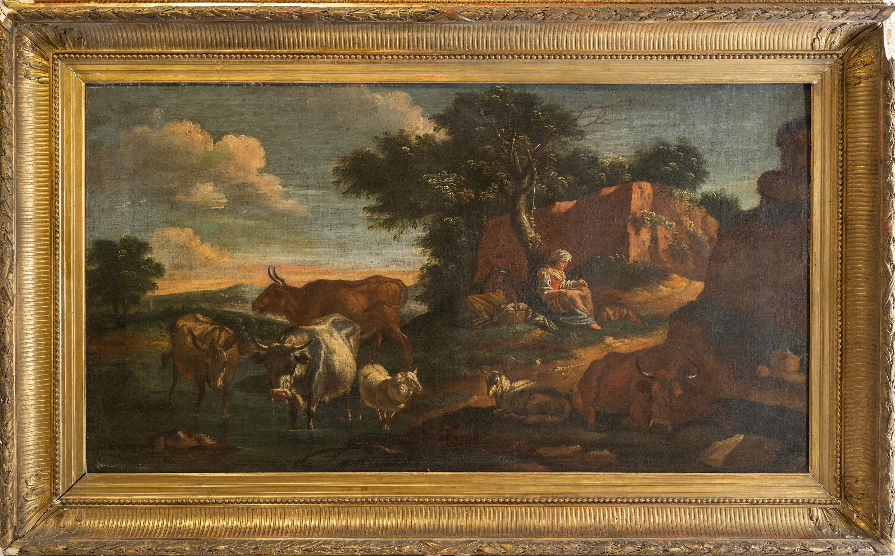 18th century French school, "Vachère et son troupeau", oil o…