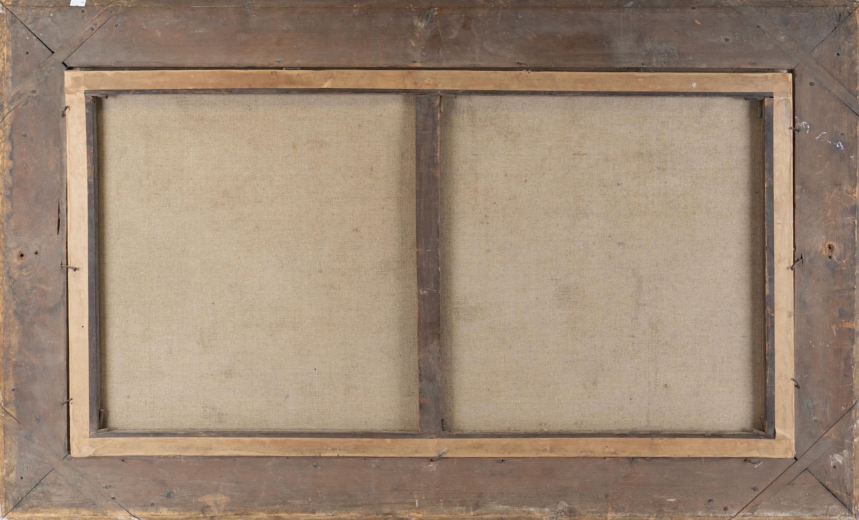 18th century French school, "Vachère et son troupeau", oil on canvas, H : 56,5 cm, L : 102 cm. In its frame. Damage and missing parts