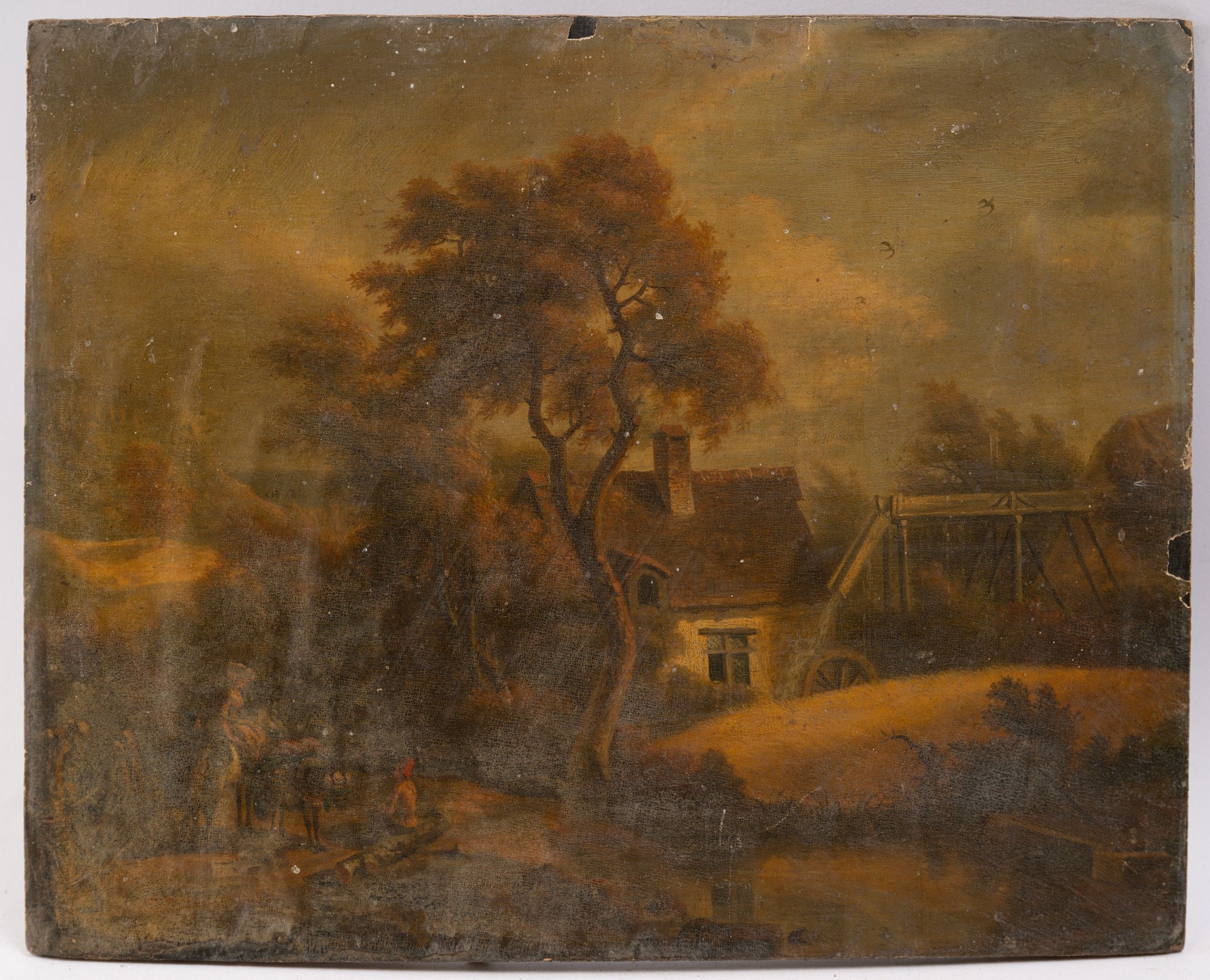 Flemish school of the 18th century, animated landscapes, oil on paper mounted on wood, H: 27 cm, W: 34.5 cm
