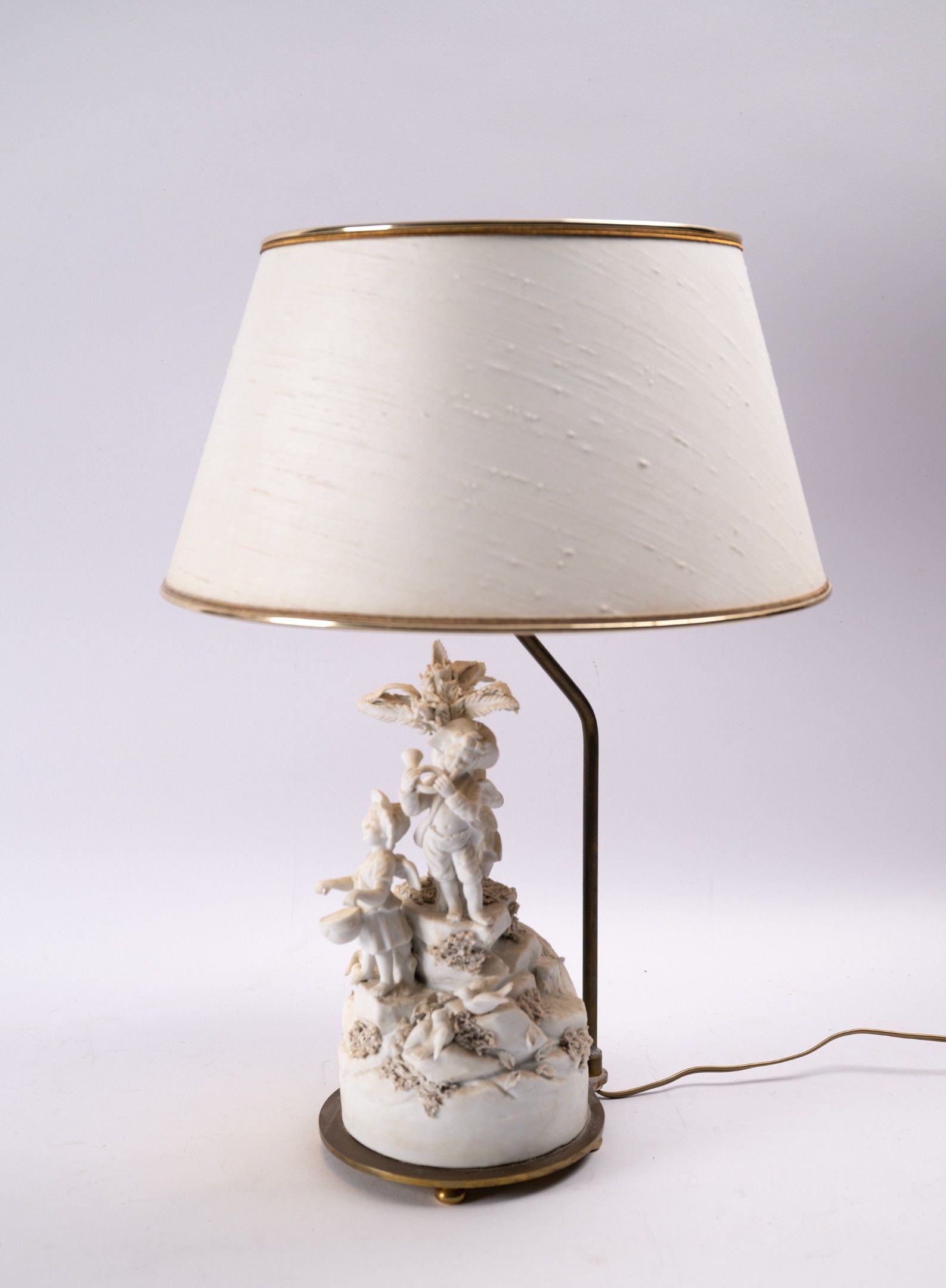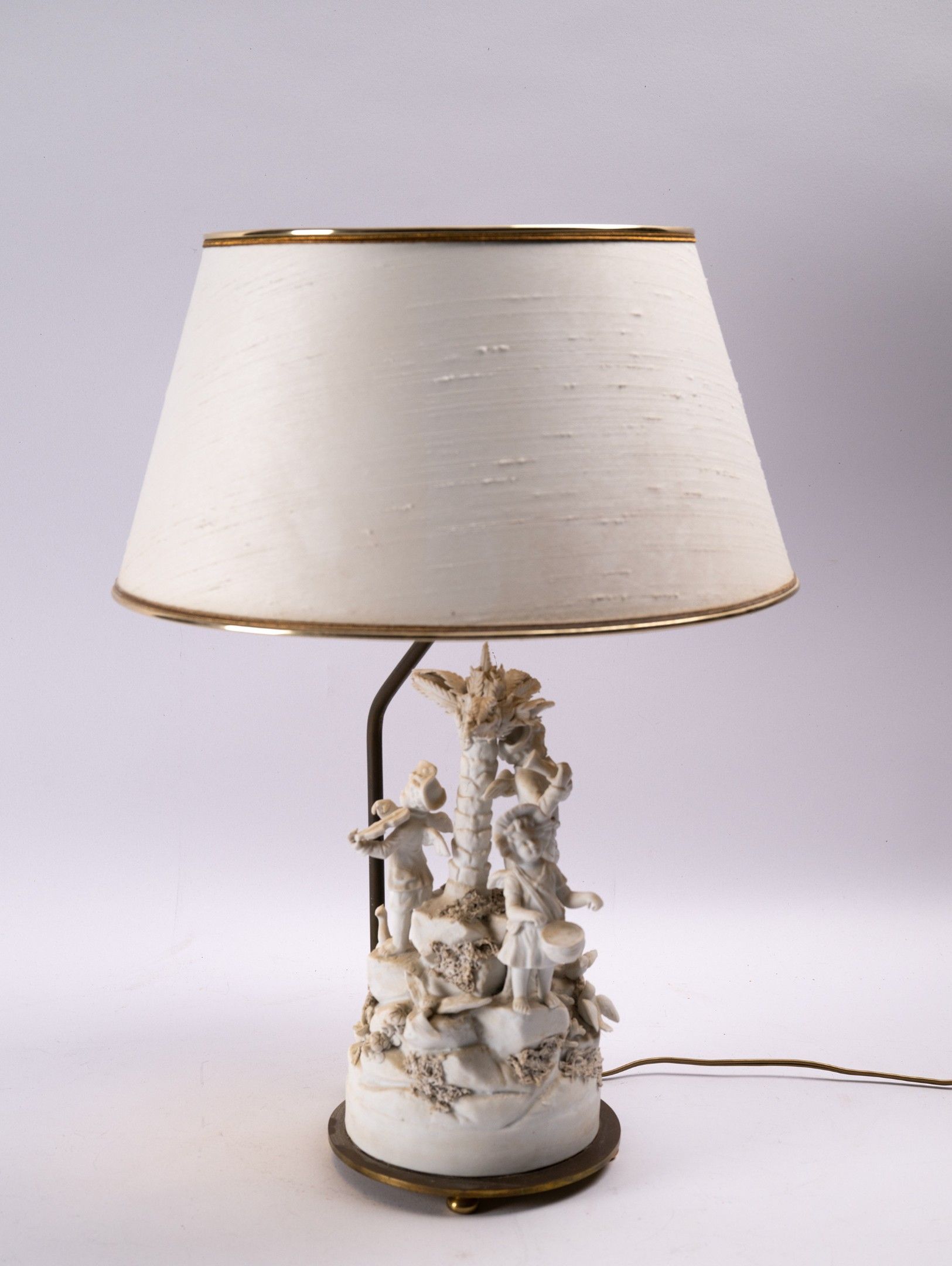 Bisque living room lamp: child hunter, violinist and drummer, minor accidents, H: 45 cm